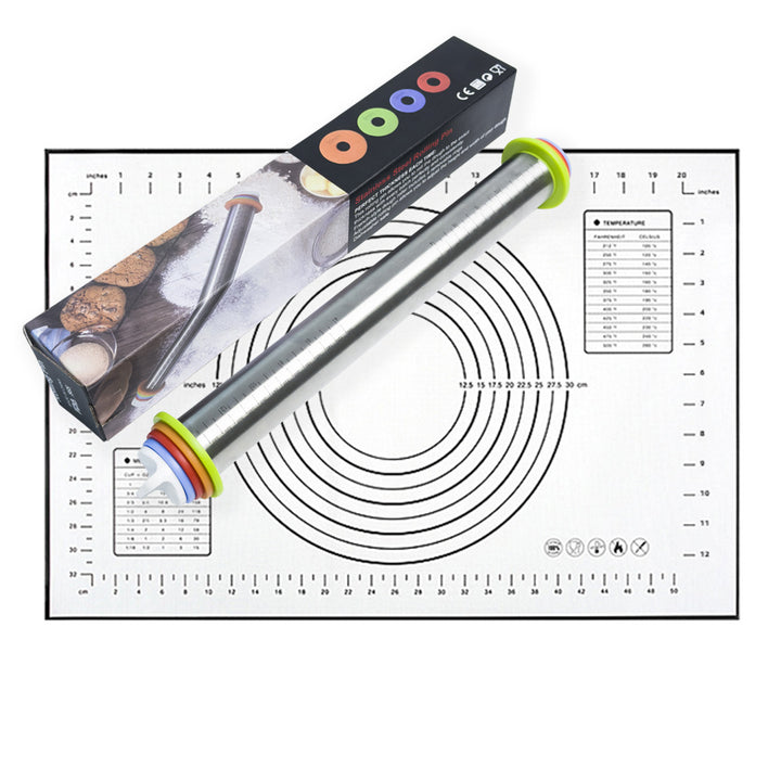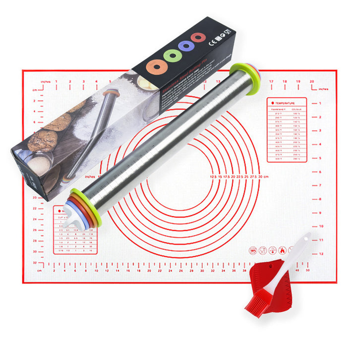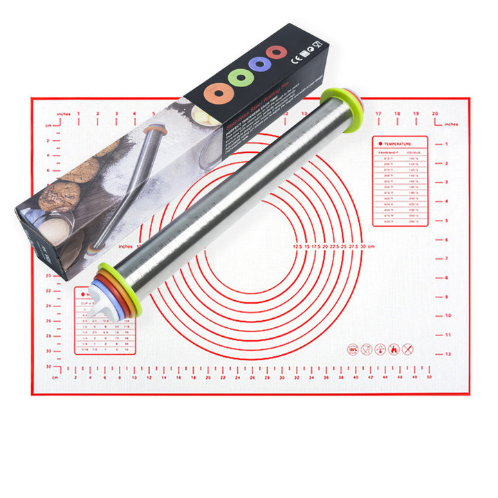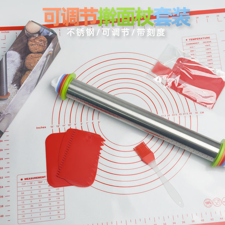 Cross-border flour pad stainless steel adjustable thickness rolling pin graduated rolling pin dough leather material kneading tool set