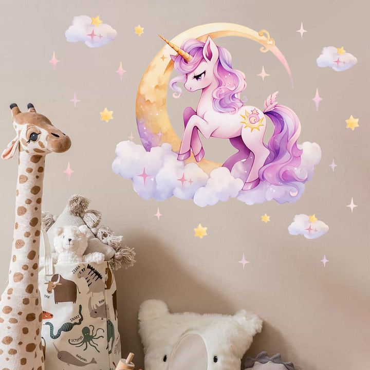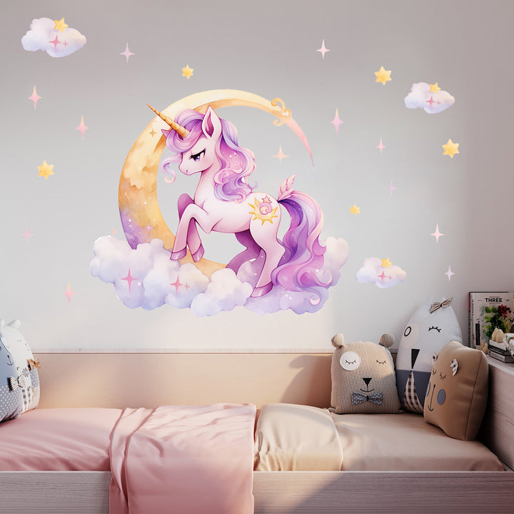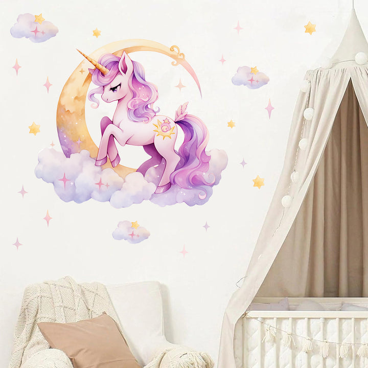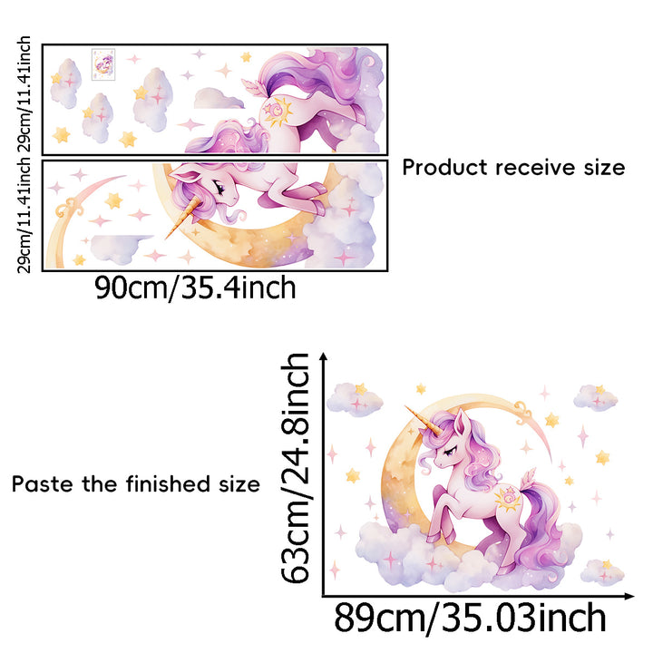 Cross-border Foreign Trade Pink Unicorn Pony Poly Moon Clouds Stars Stickers Arrangement Decorative Stickers