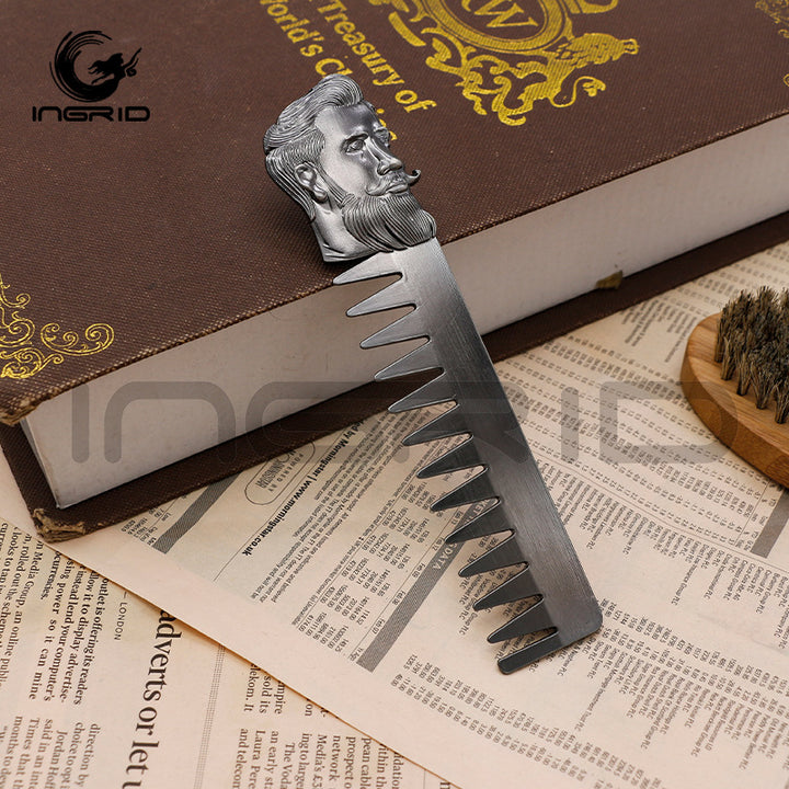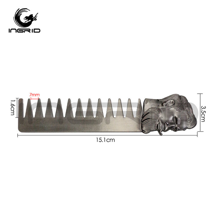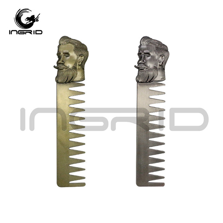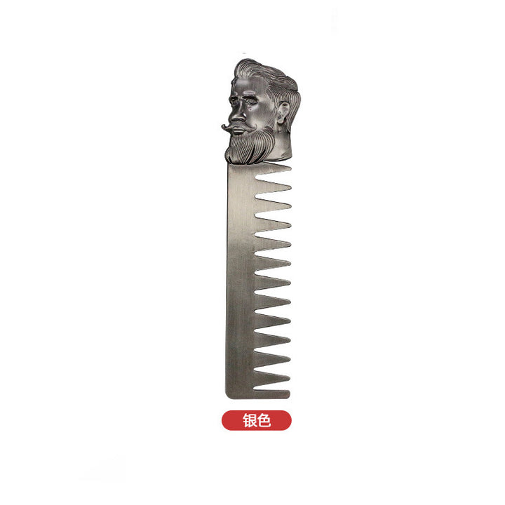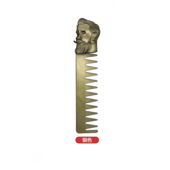 Cross-border Hair Salon Men's Beard Styling Comb Electroplated Bronze Head Stainless Steel Textured Comb Hair Oil Hair Comb