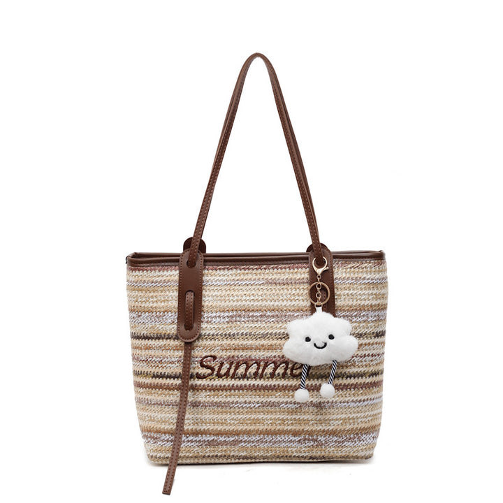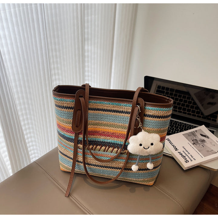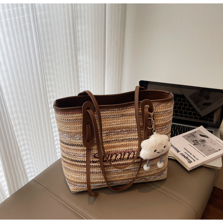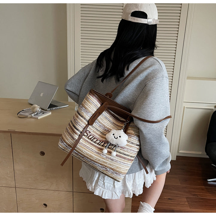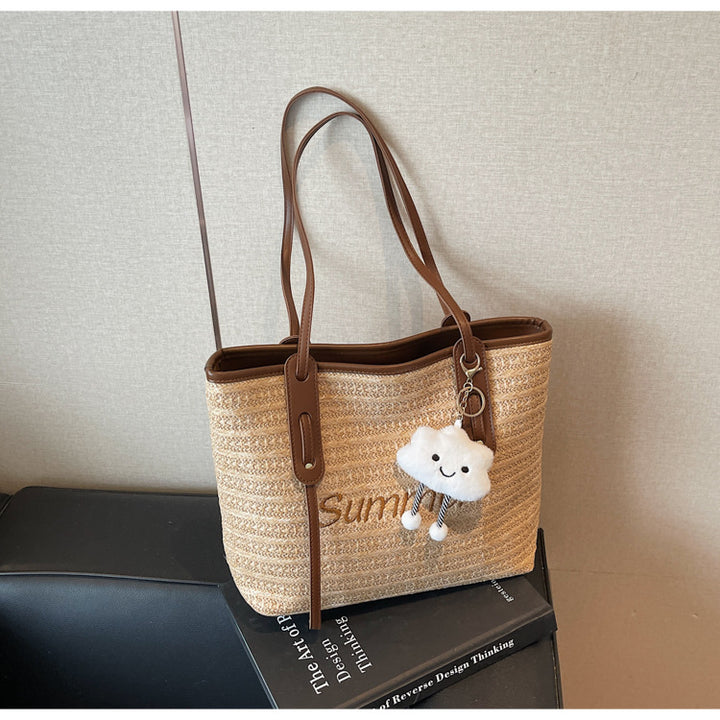Cross-border hand-woven straw bag women's large capacity 2025 new summer shoulder tote seaside vacation beach bag