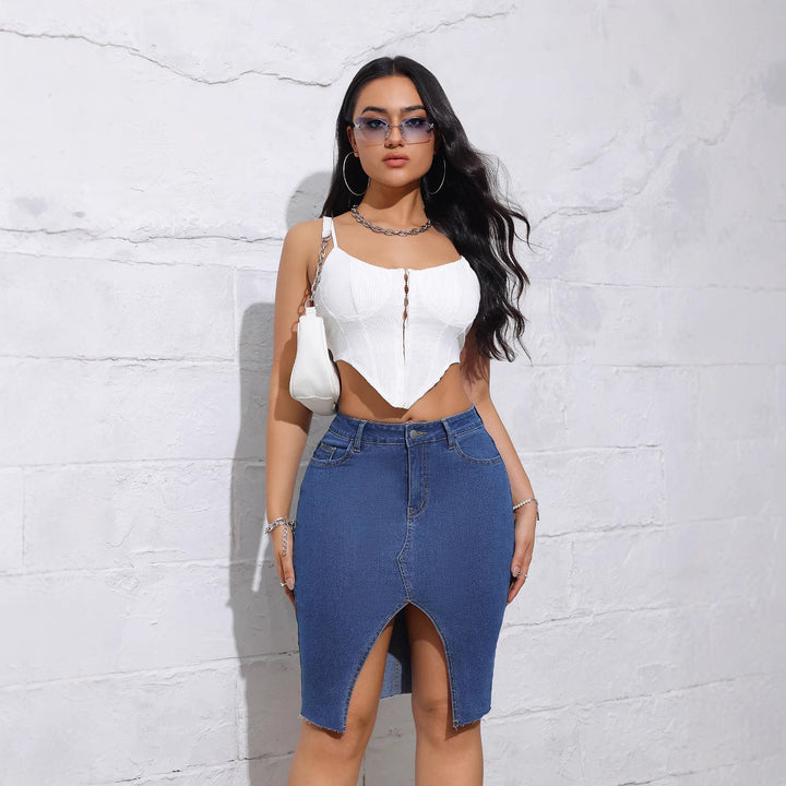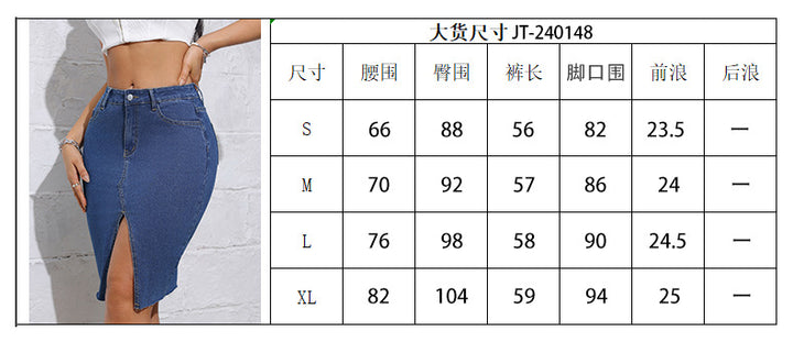 Cross-border High Waist Split Denim Skirt Skinny Elastic Skinny Medium and Long One-Step Hip Wrap Skirt Women's Summer