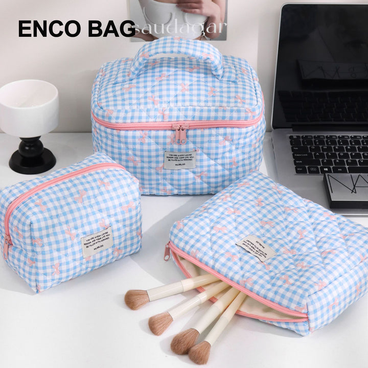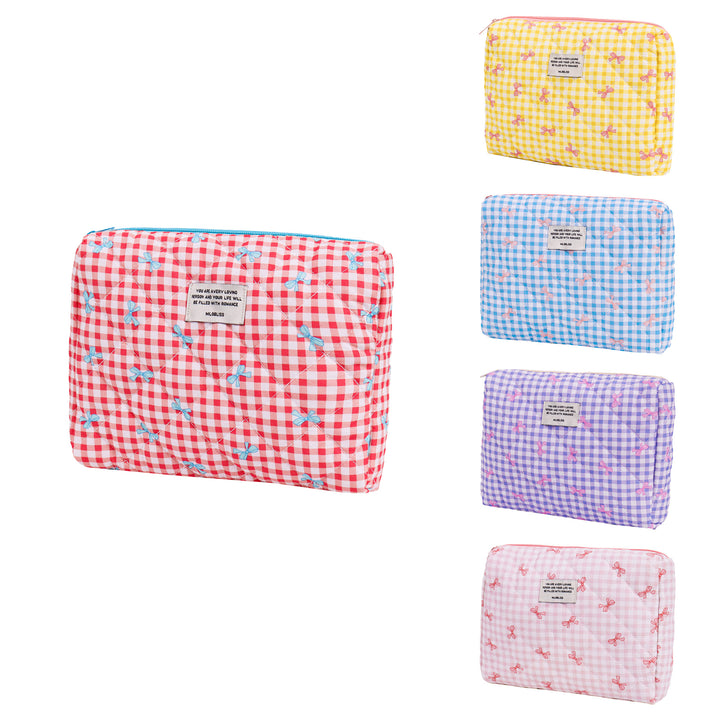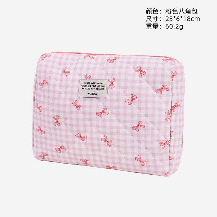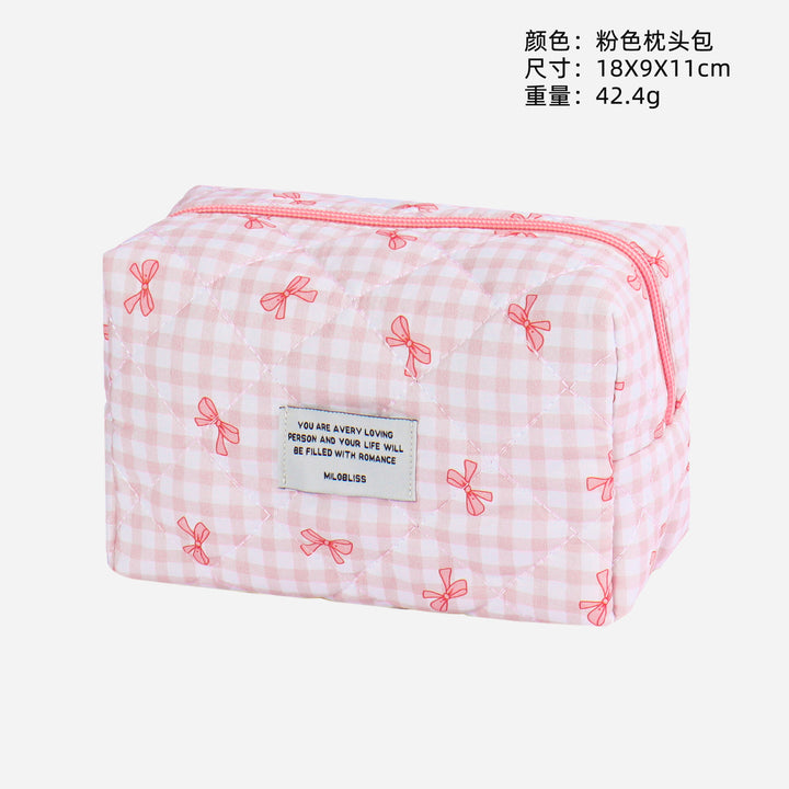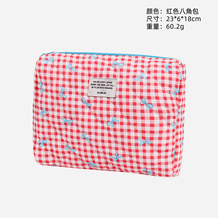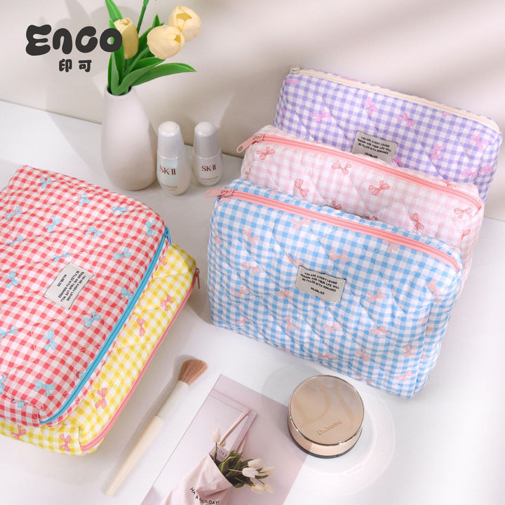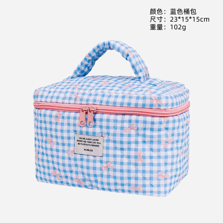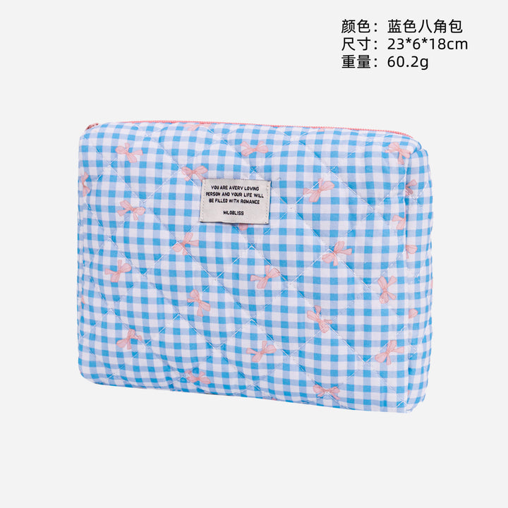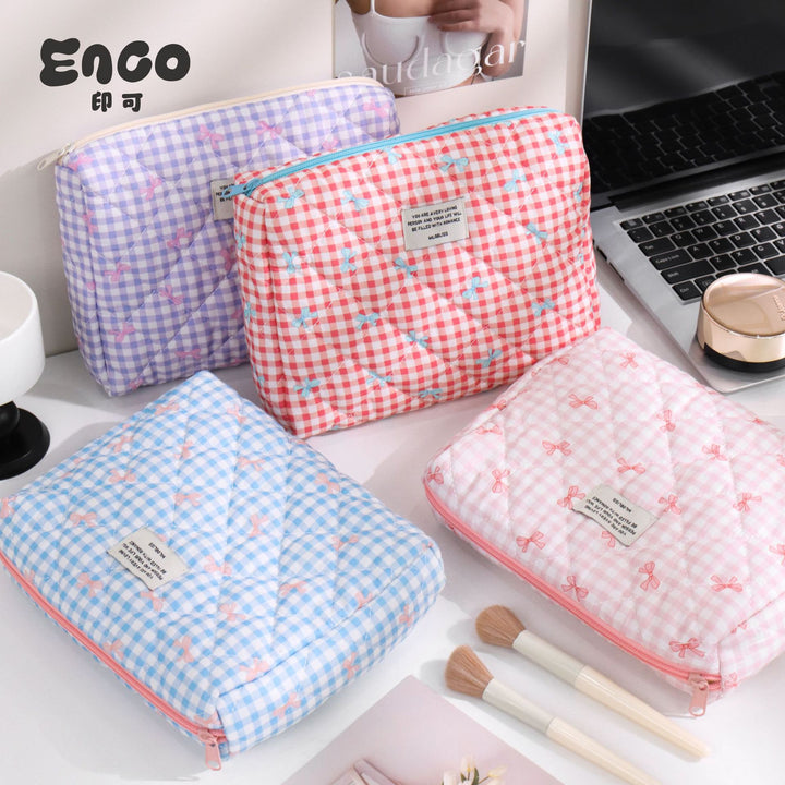 Cross-border hot sale plaid bow cute cosmetic bag large capacity high-end storage bag girls toilet bag pencil bag