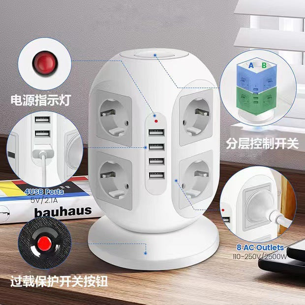 Cross-border hot-selling European standard vertical smart socket Korean standard German standard socket type-c multi-function power strip plug-in b...