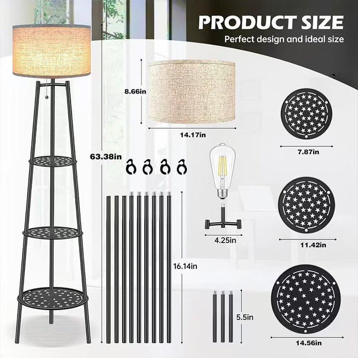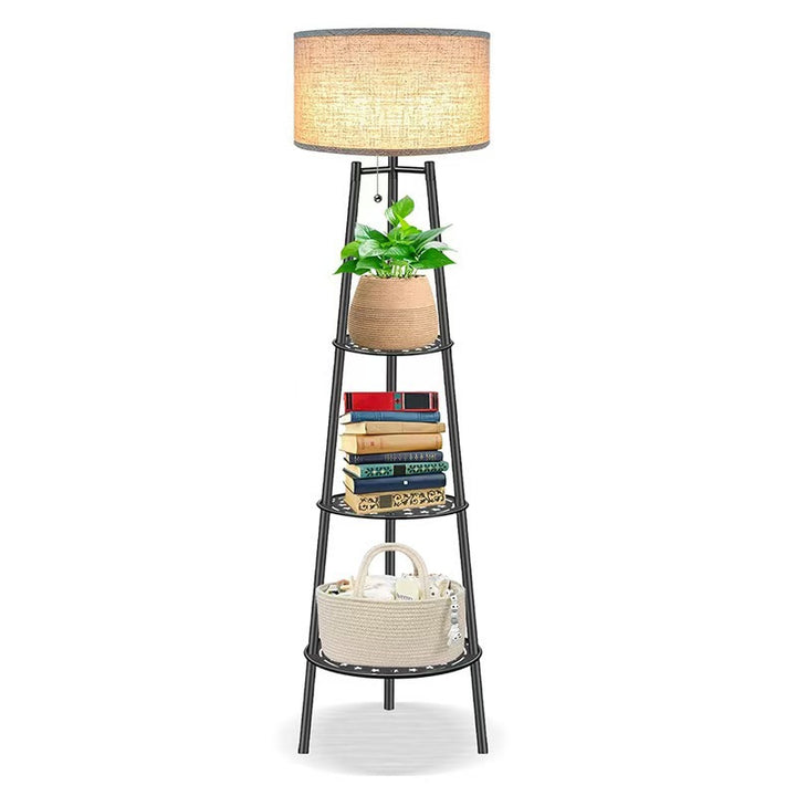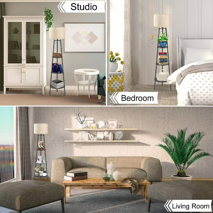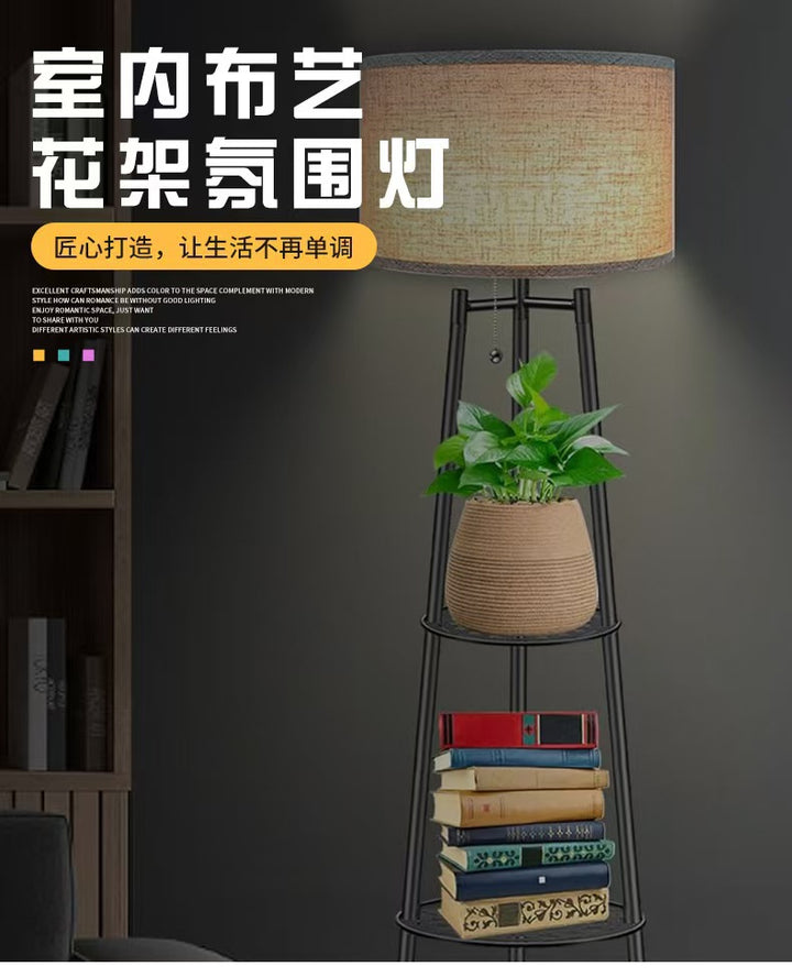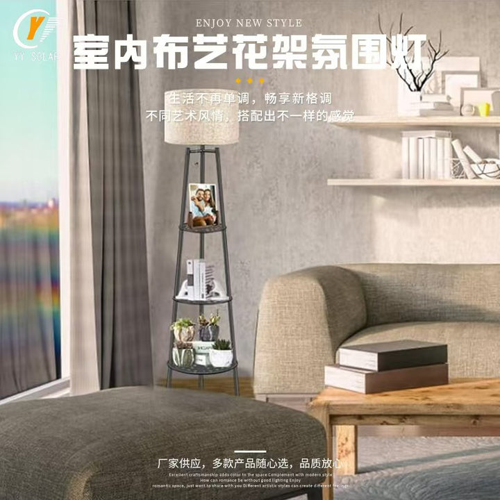 Cross-border hot-selling fabric ambient light Nordic modern simple three-layer storage rack shelf floor lamp can be customized