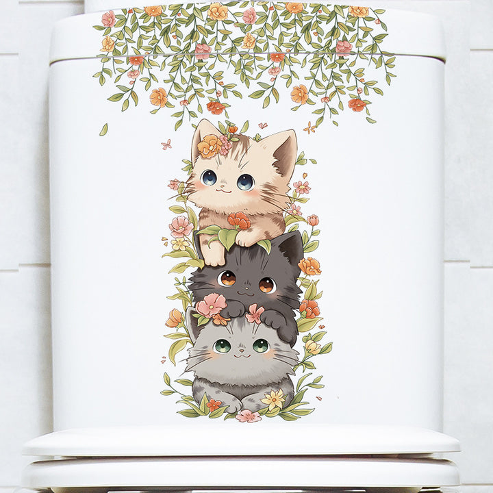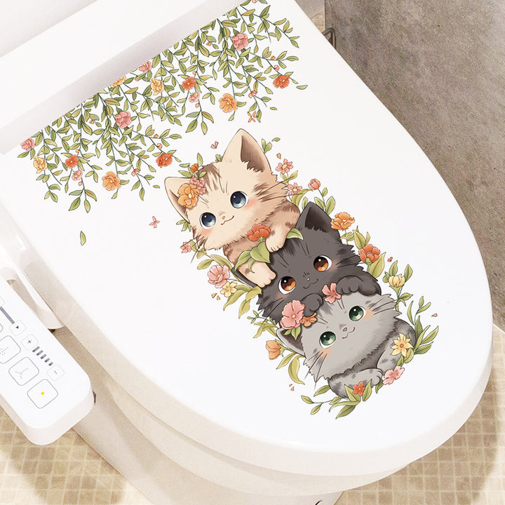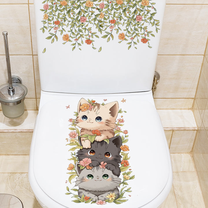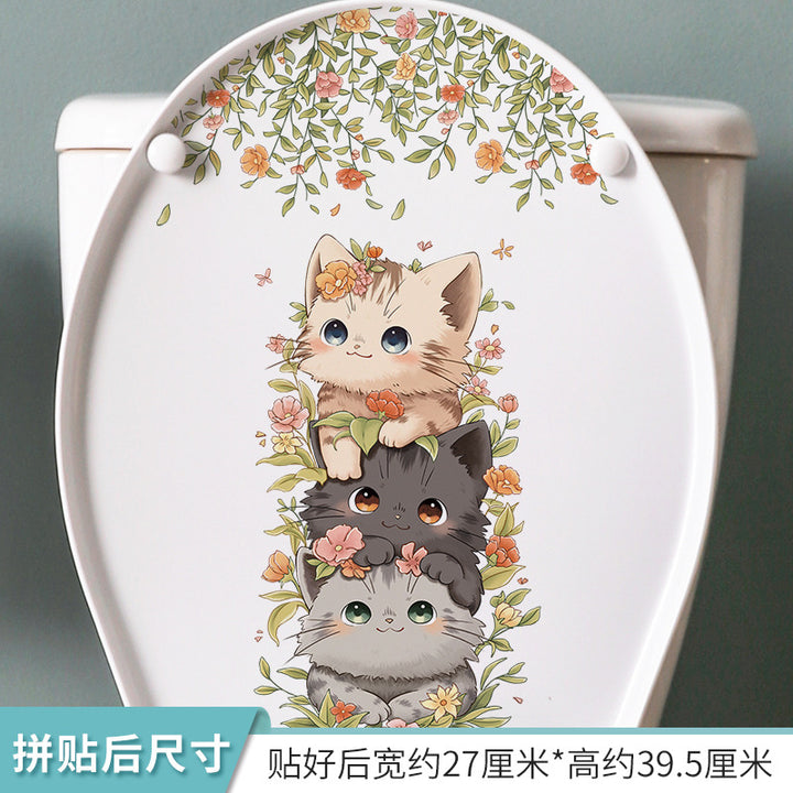 Cross-border hot-selling toilet sticker cartoon cat bathroom toilet lid decorative sticker plant flower removable toilet sticker
