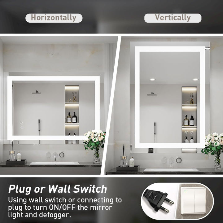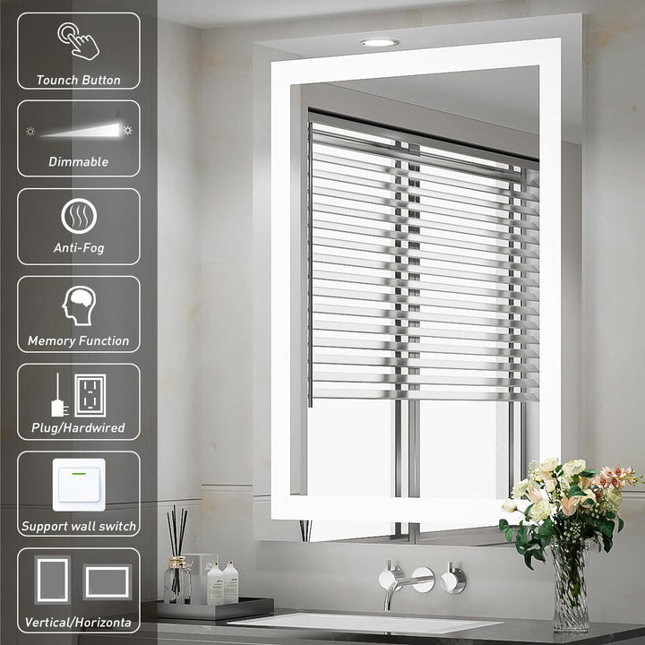 Cross-border hotel project LED smart touch bathroom mirror with light, toilet wall-mounted co...