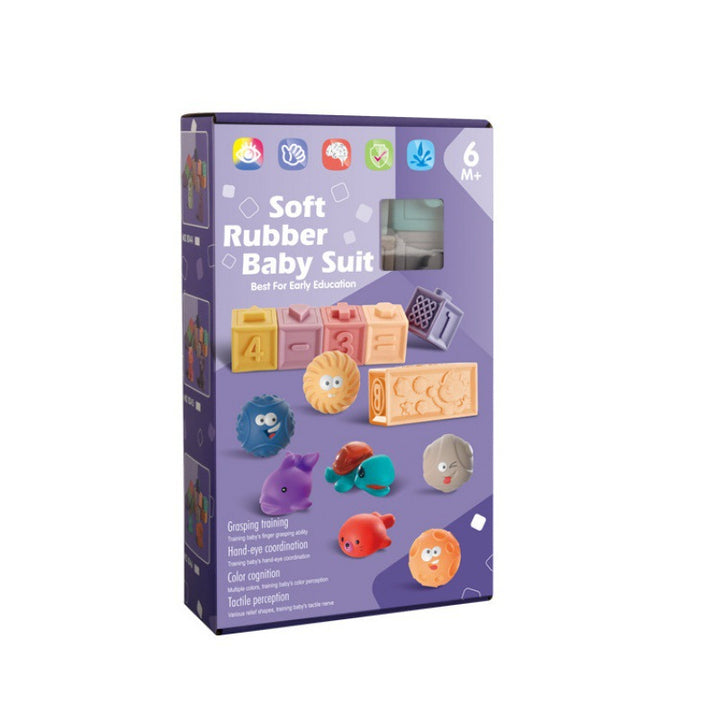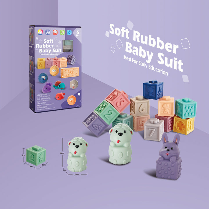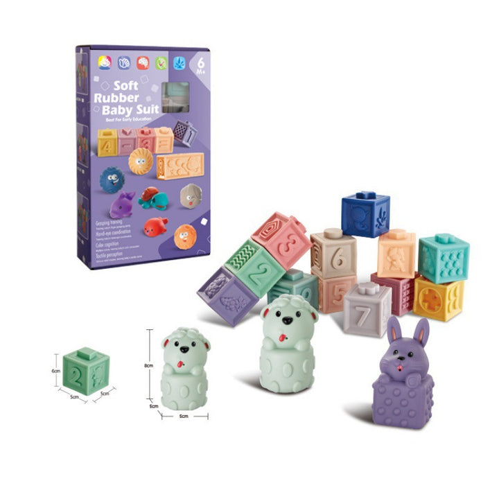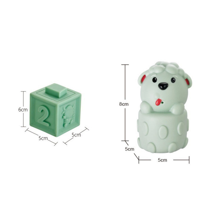 Cross-border infant assembly toys cognitive soft rubber relief animal digital building block early education bath toys