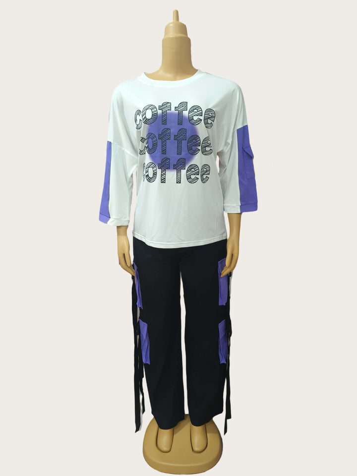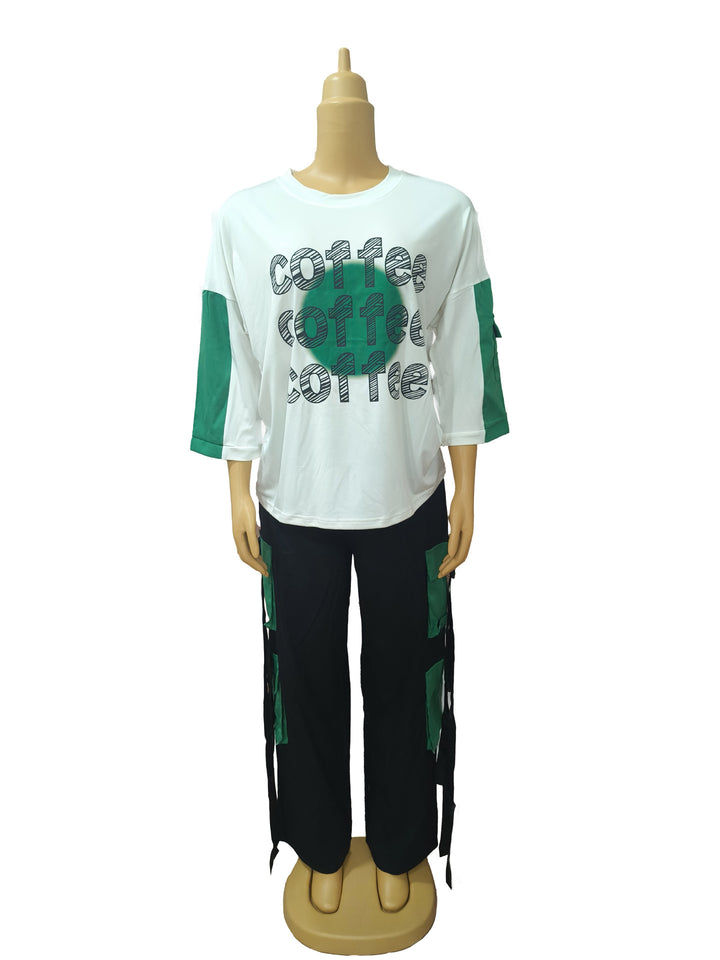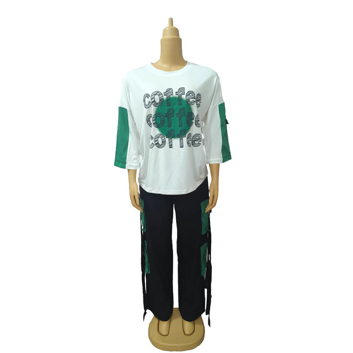 Cross-border INS Middle East and Africa Women's Clothing, New Set Large Size Crew Neck Printed Short Sleeve Internet celebrity streamer overalls
