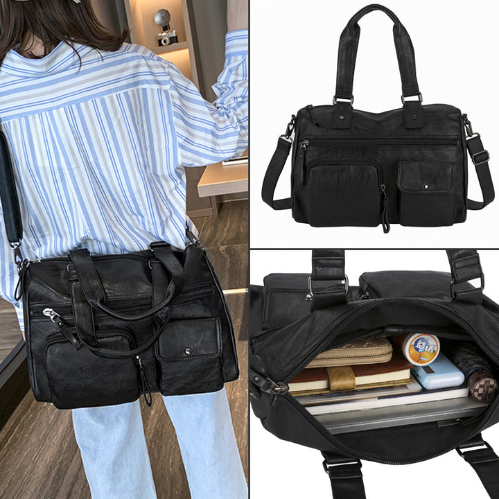 Cross-border Korean version of the new shoulder bag PU bag men's bag shoulder messenger bag 15.6 large-capacity computer travel handbag