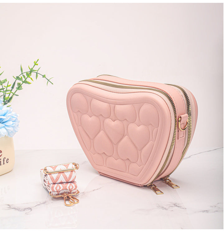 Cross-border large-capacity portable love cosmetic bag, simple makeup brush storage bag, portable travel portable toilet bag
