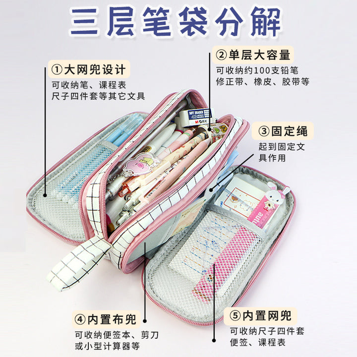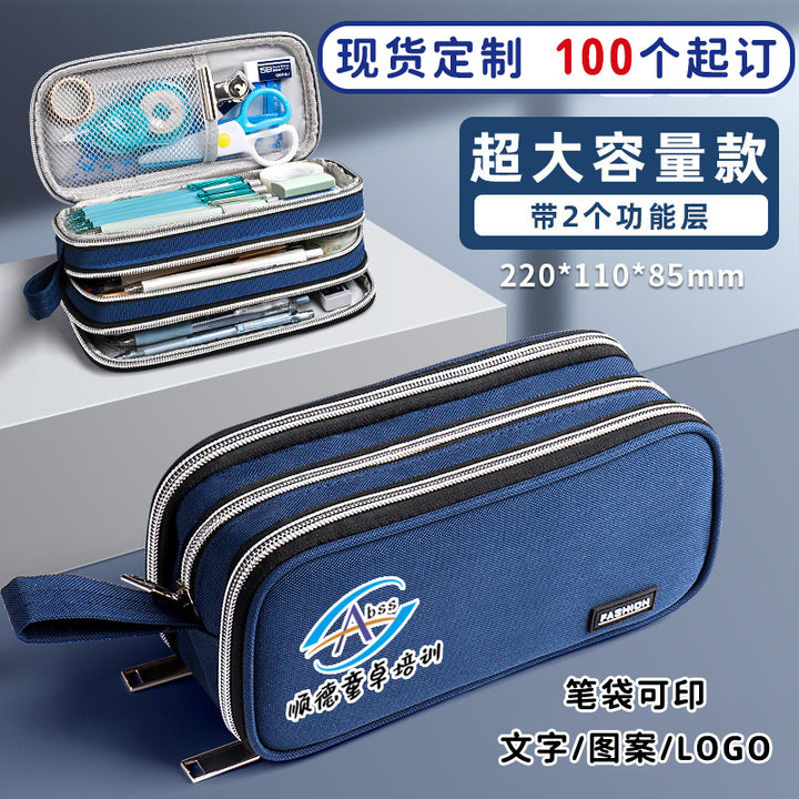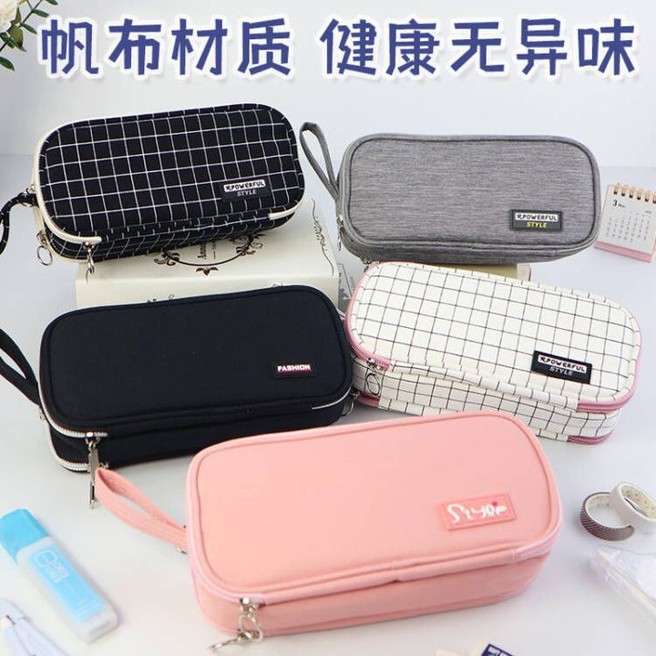 Cross-border large-capacity zipper hand-held pencil case Fabric canvas Middle school student stationery case Multifunctional simple pencil case
