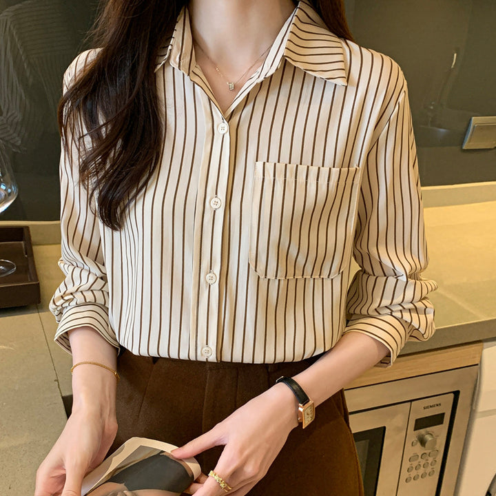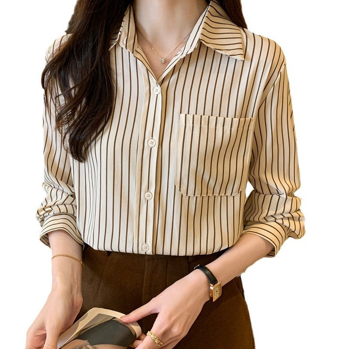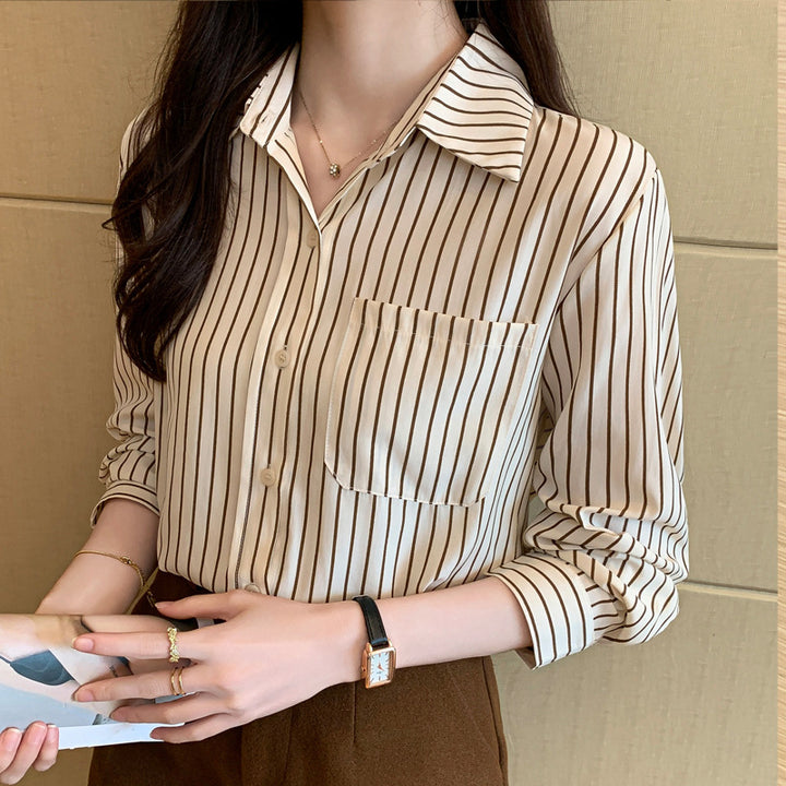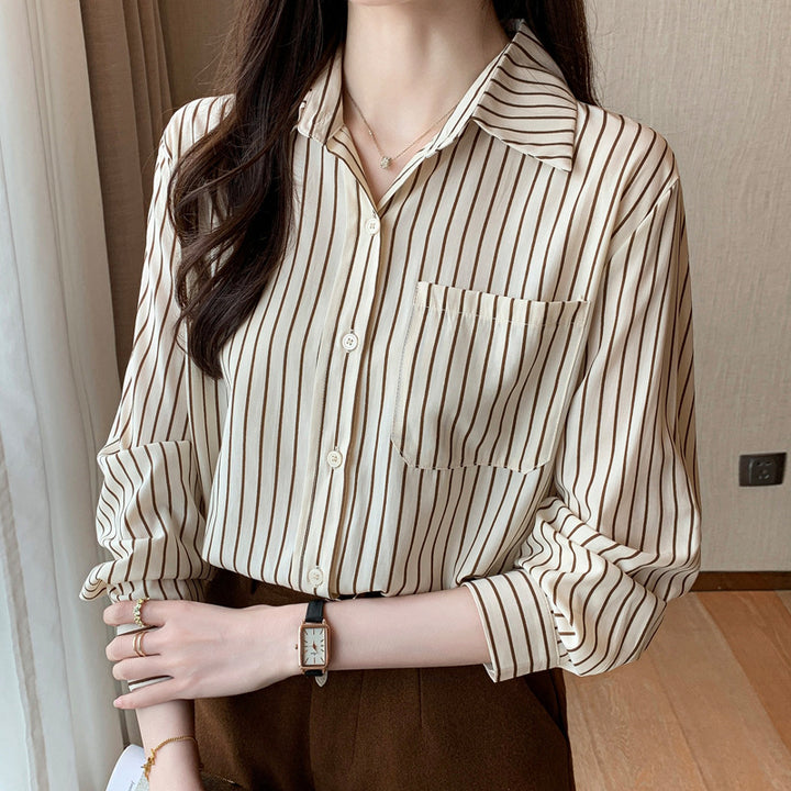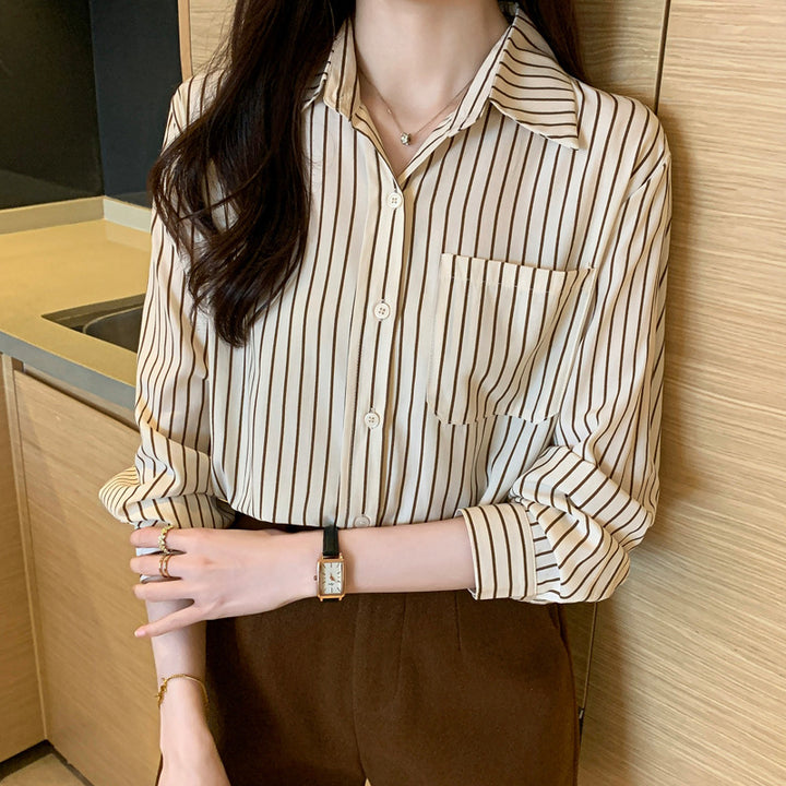 Cross-border large-size women's clothing loose and versatile commuter fashion striped shirt w...