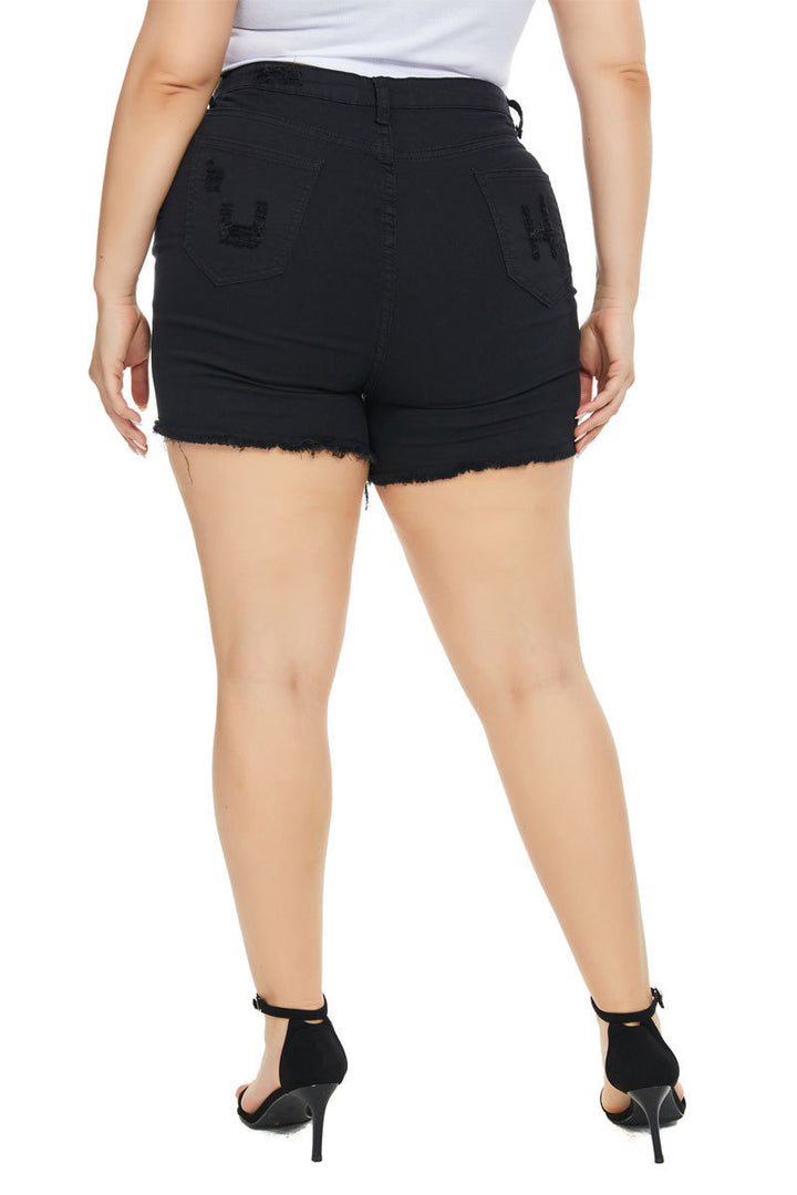 Cross-border large-size women's clothing ripped denim shorts manufacturers wholesale high-waisted women's clothing jeans summer