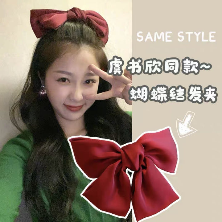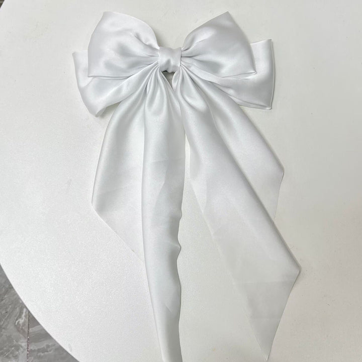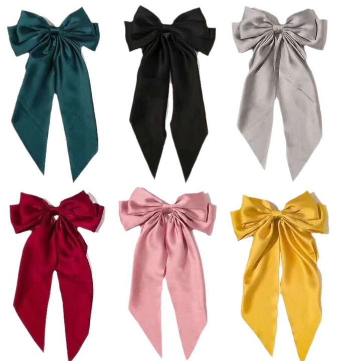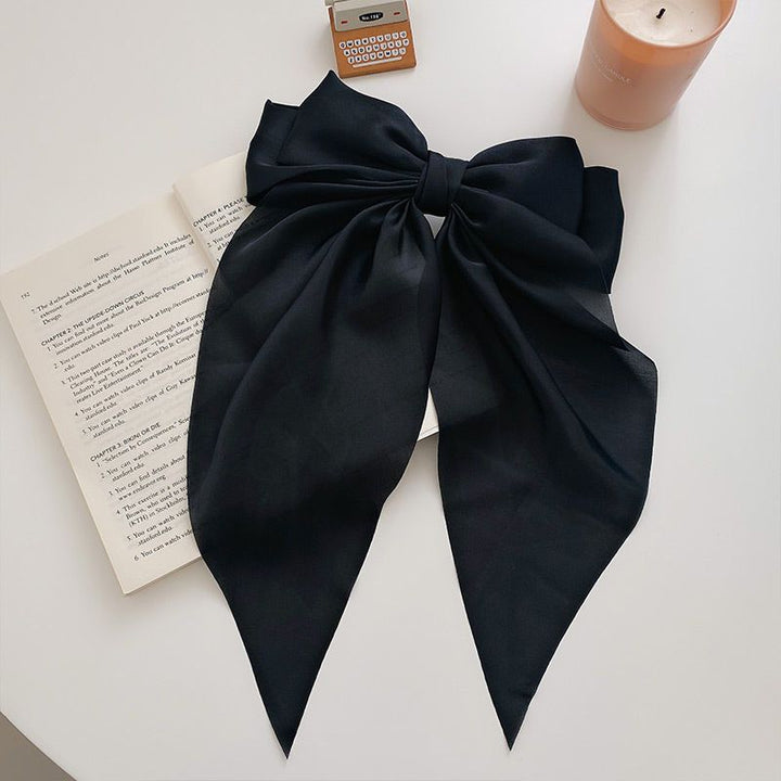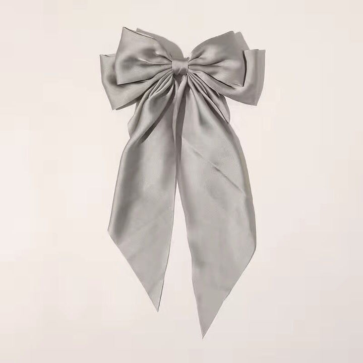 Cross-border long satin bow streamer hairpin spring clip popular oversized solid color back head hairpin women's jewelry