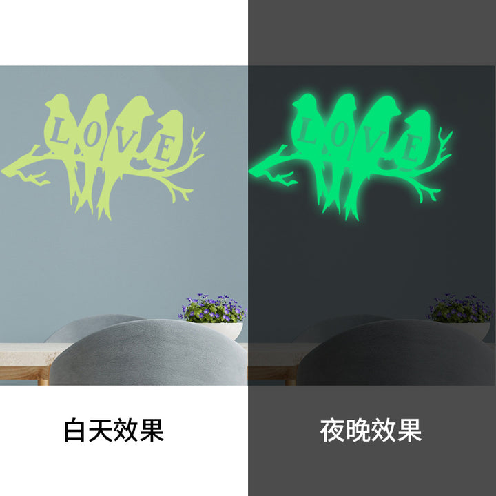 Cross-border luminous bird living room decoration creative wall sticker self-adhesive fluorescent blue bird decoration wall wall sticker