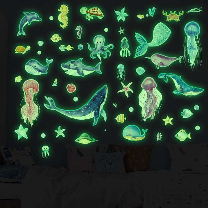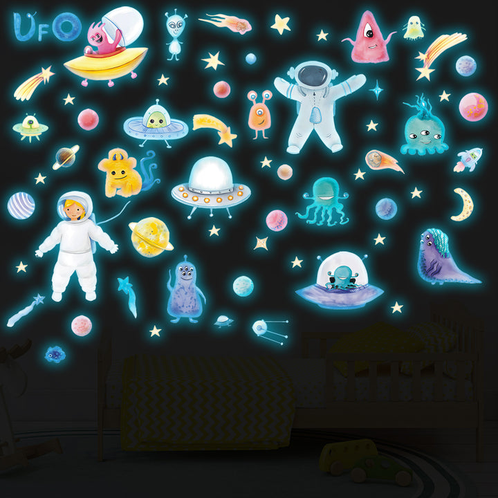 Cross-border luminous ocean fish astronaut hummingbird flamingo sticker family children's room sticker