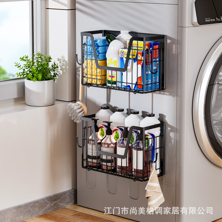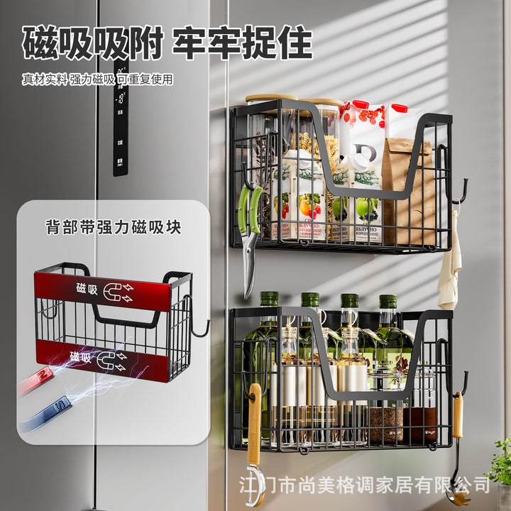 Cross-border magnetic refrigerator hanger foldable refrigerator side plastic wrap seasoning storage basket kitchen magnetic rack