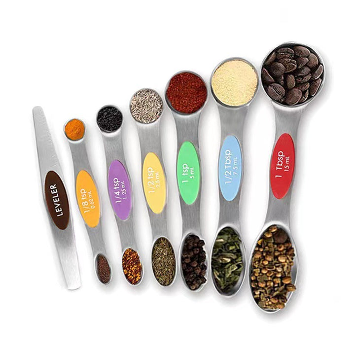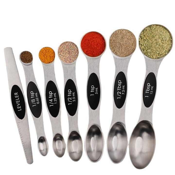 Cross-border magnetic suction can overlap 430 stainless steel double-head measuring spoon integrated set with graduated multi-function measuring sp...