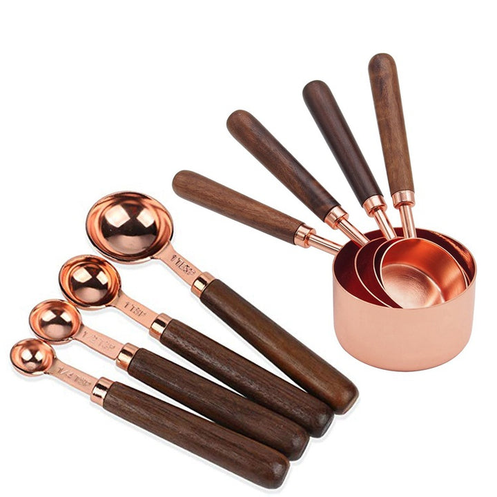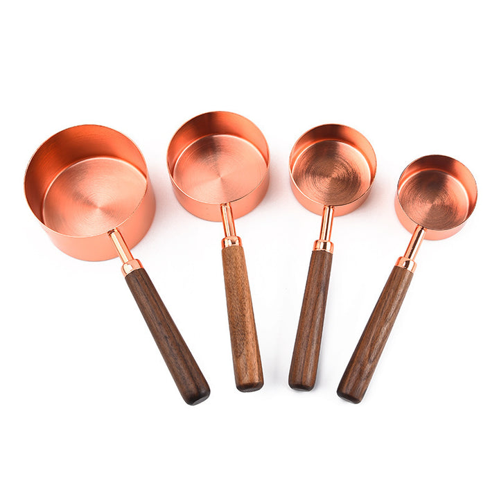 Cross-border manufacturers spot spot supply gold-plated rose gold acacia wood stainless steel measuring cup measuring spoon with scale set