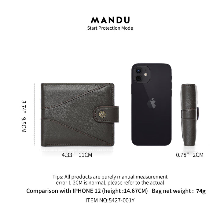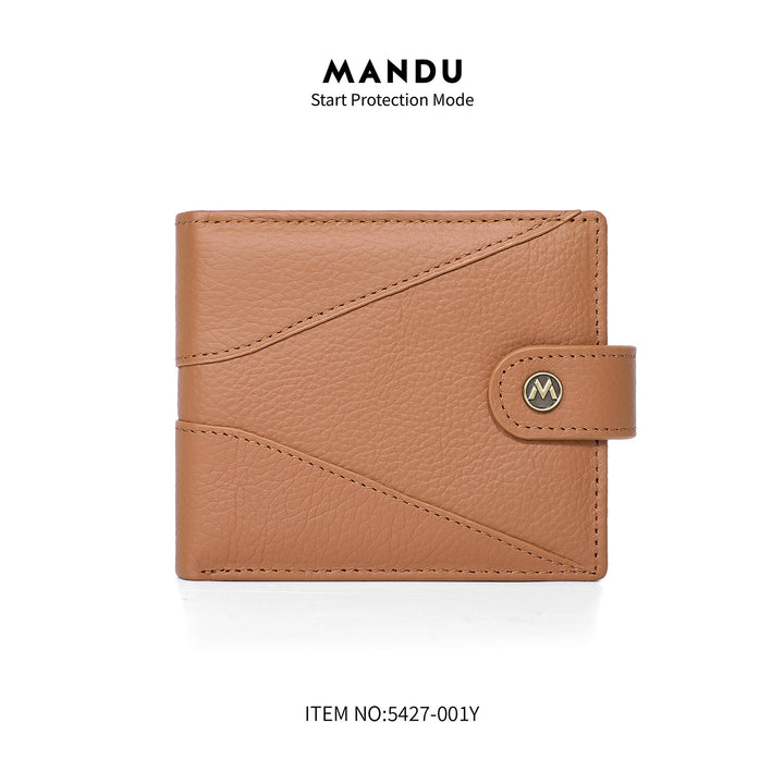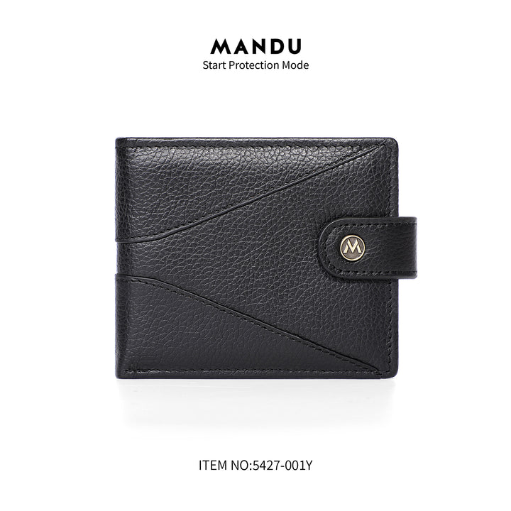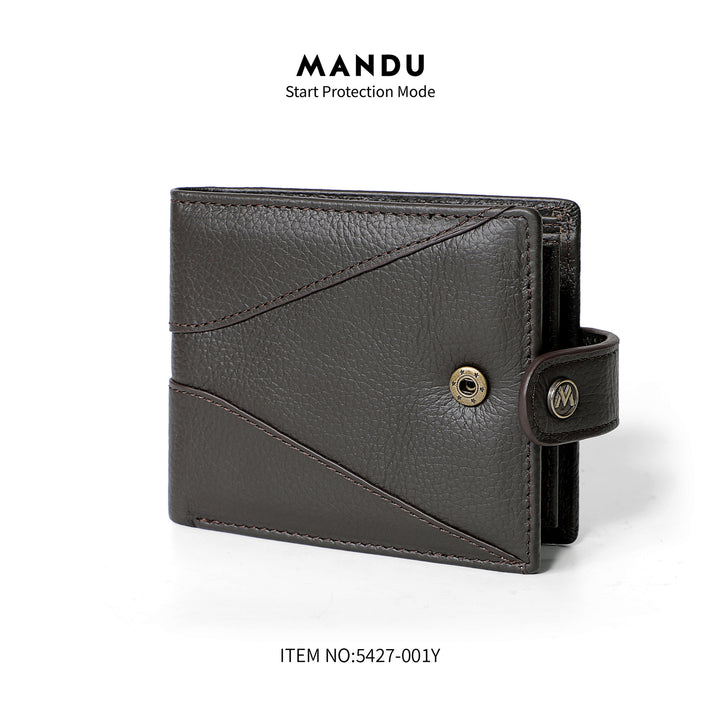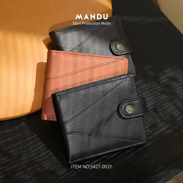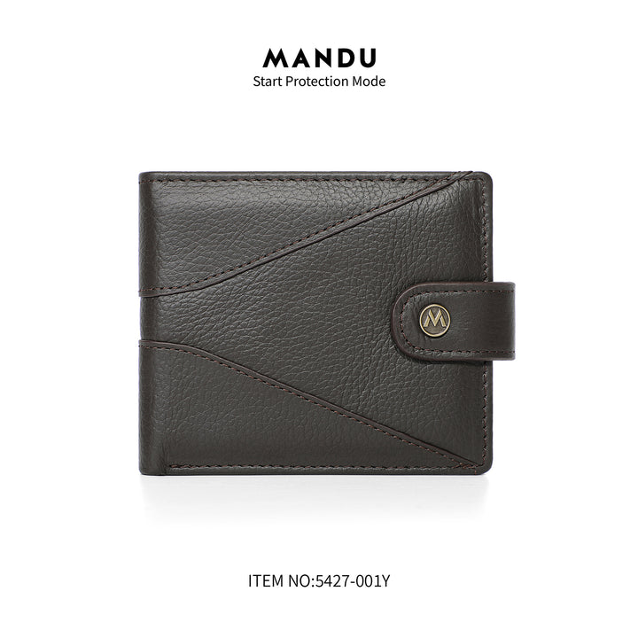 Cross-border men's wallet RFID anti-theft brush sewing thread cowhide short leather wallet buckle wallet men's