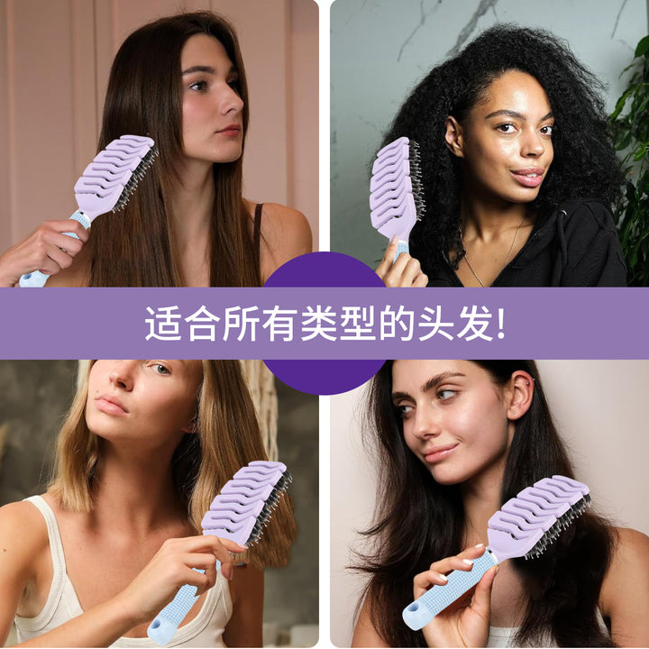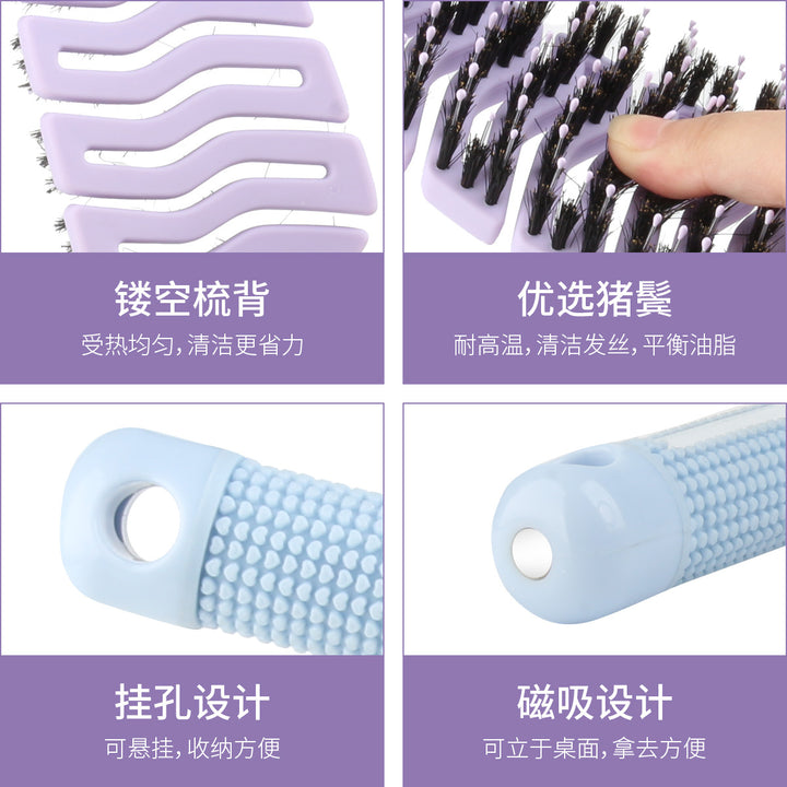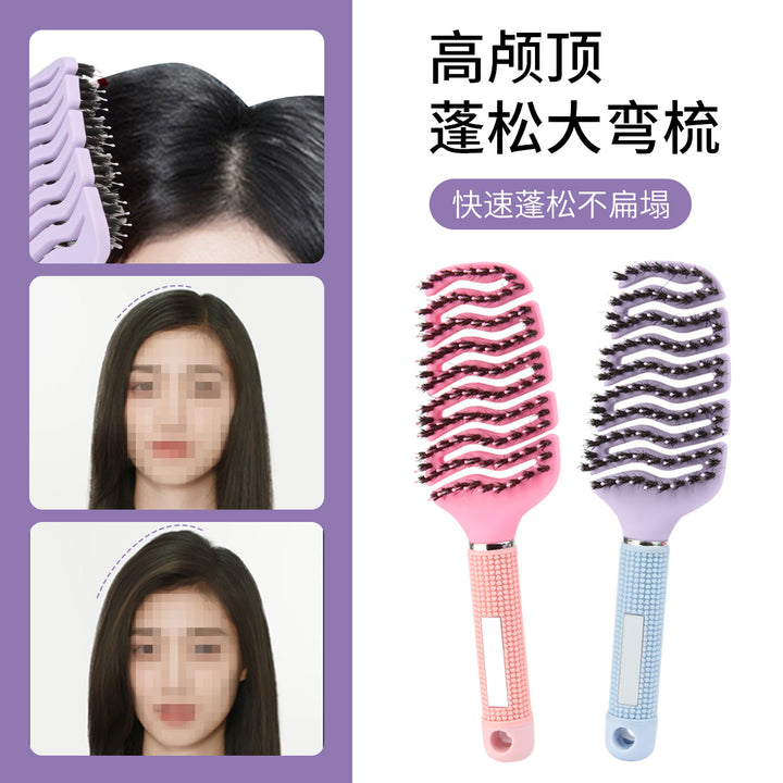 Cross-border multi-color fluffy big curved comb, smooth hair styling massage ribs comb, men's and women's portable bristles hair comb