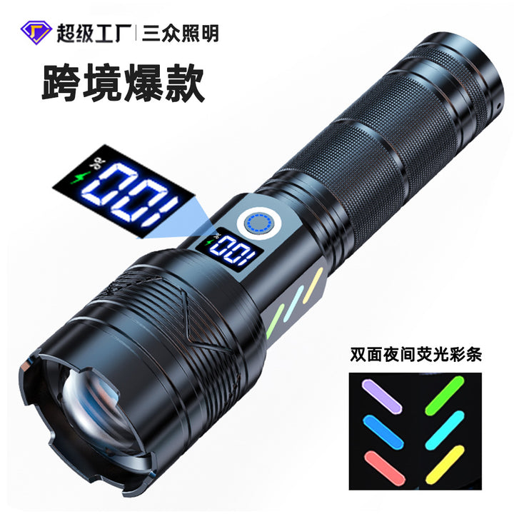 Cross-border multi-function tactical flashlight strong light laser gun outdoor zoom digital d...