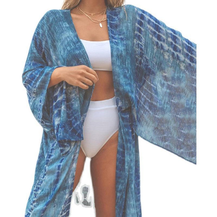 Cross-border new 2024 summer printing sunscreen beach vacation dress bikini chiffon cardigan blouse women