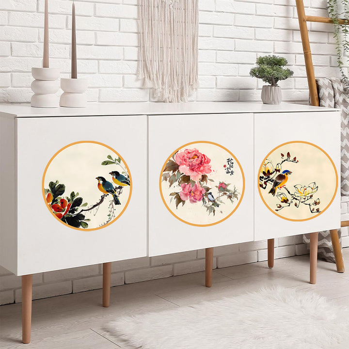 Cross-border new Chinese style flower bird wall stickers for beautiful decoration of room walls