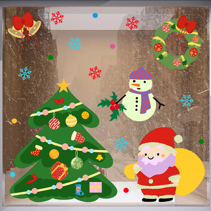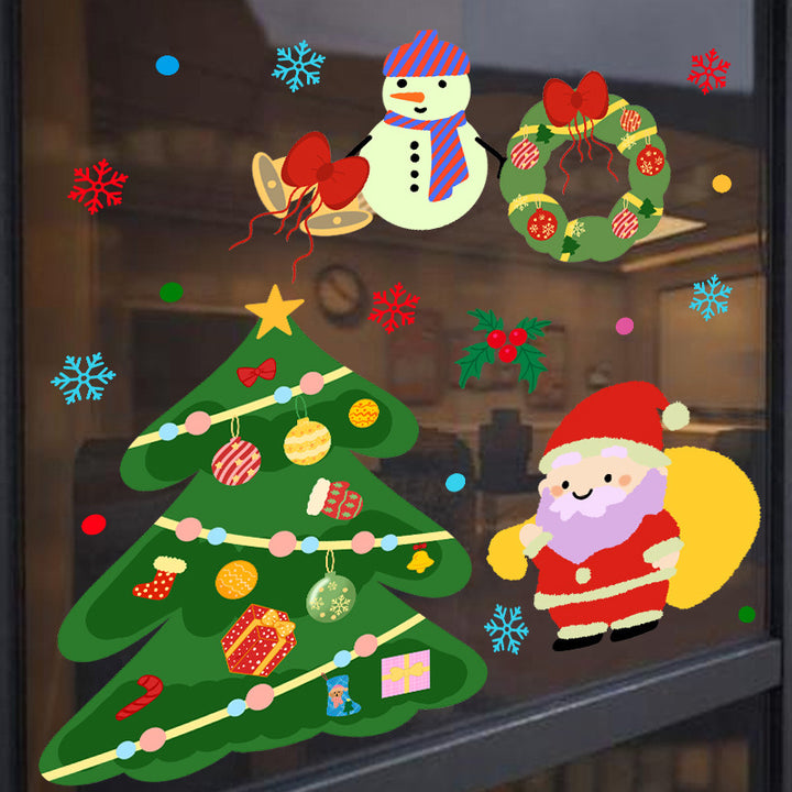 Cross-border new Christmas tree stickers Christmas snowman snowflake window stickers New Year decorations Electrostatic snowflake glass stickers
