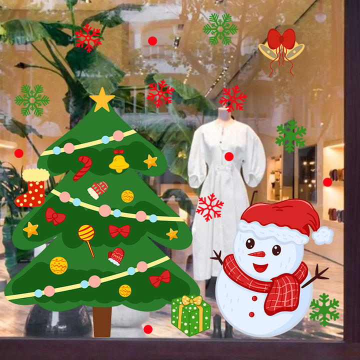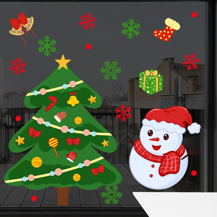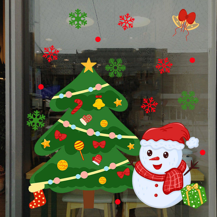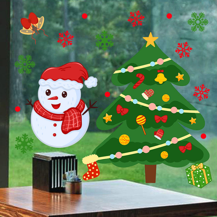 Cross-border new Christmas tree stickers Christmas snowman snowflake window stickers New Year decorations Electrostatic snowflake glass stickers