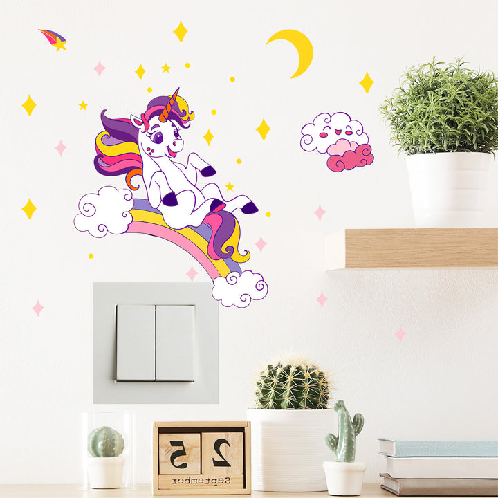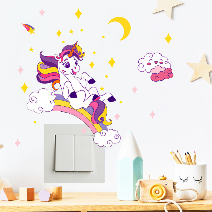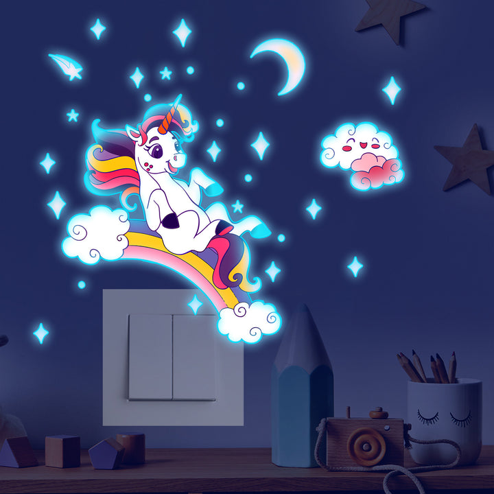 Cross-border new cloud unicorn blue luminous home bedroom living room children's room wall switch decorative sticker