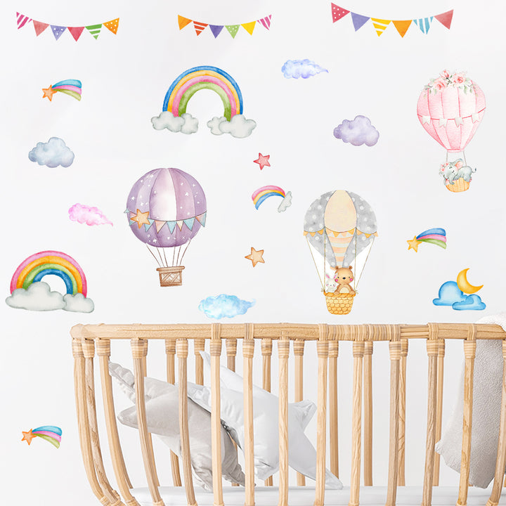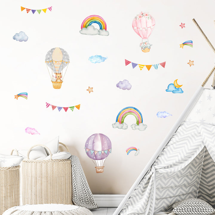 Cross-border new creative rainbow hot air balloon wall sticker for children's room bedroom decoration beautiful self-adhesive sticker