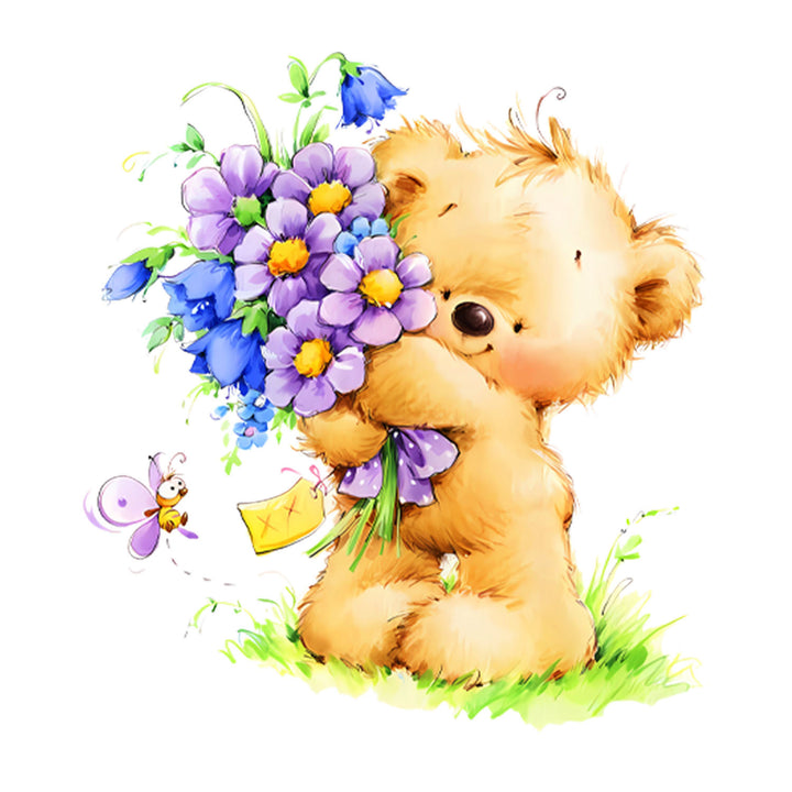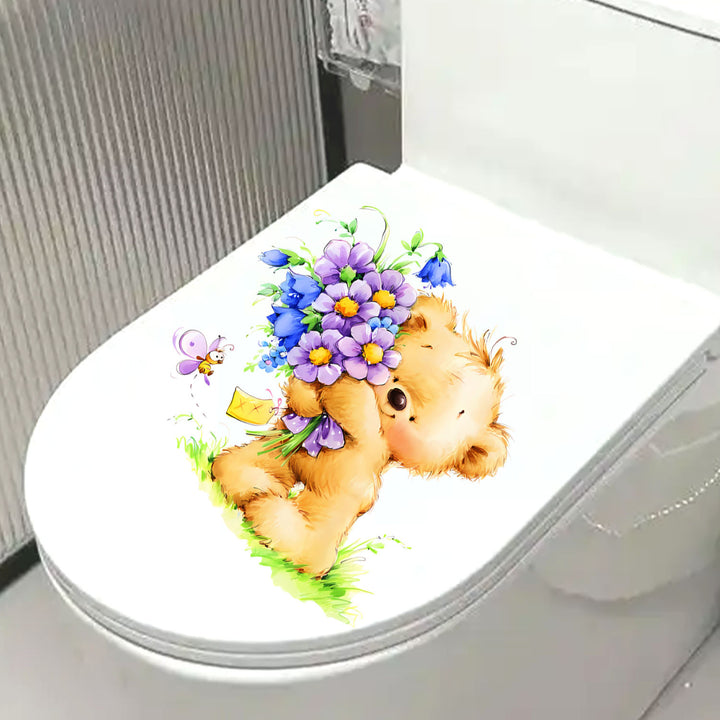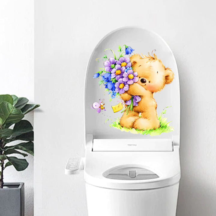 Cross-border new doll bear flower creative wall sticker home bathroom toilet decoration beautiful self-adhesive sticker