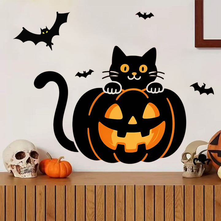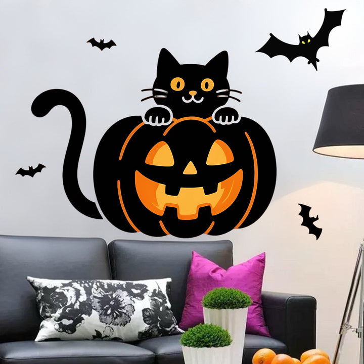 Cross-border new Halloween decorative stickers pumpkin kitten bat wall stickers for holiday stickers