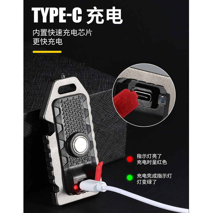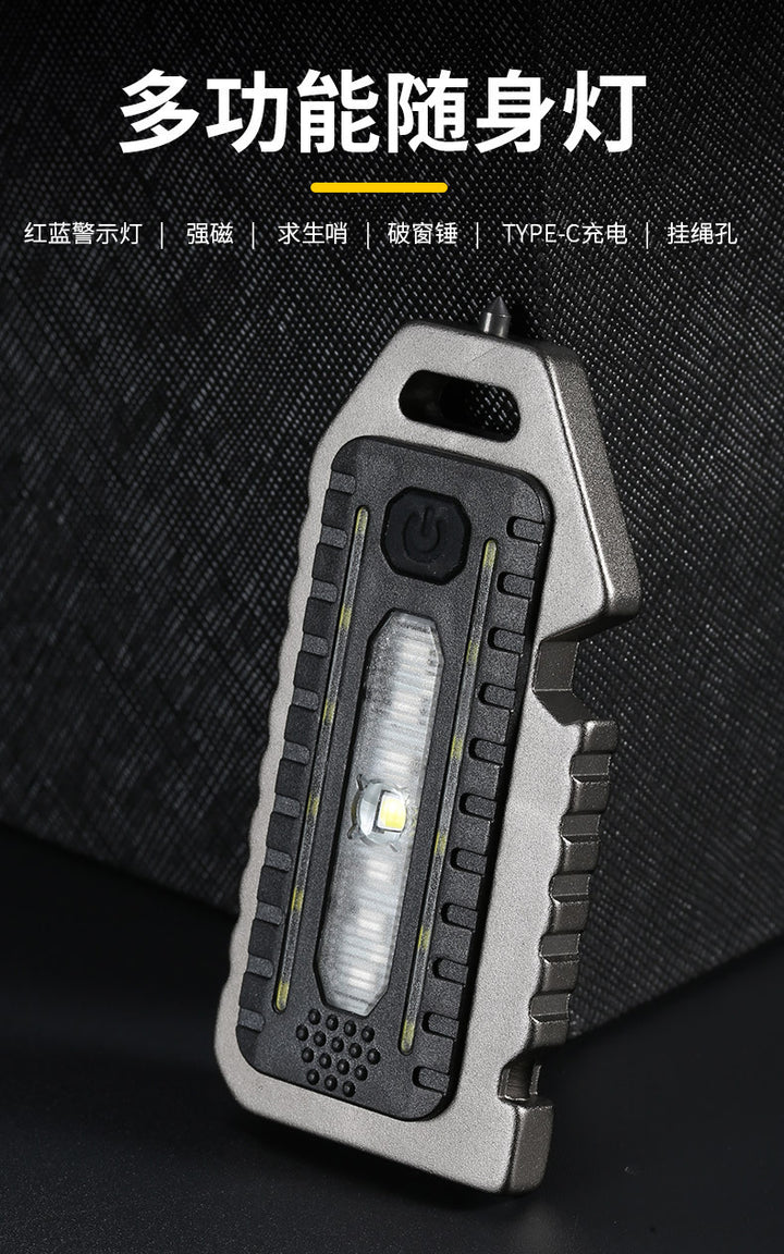 Cross-border new keychain light Type-C charging outdoor emergency survival whistle safety ham...