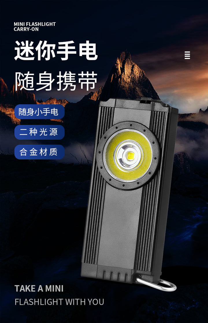 Cross-border new keychain light USB charging portable with magnet pen holder COB work light m...