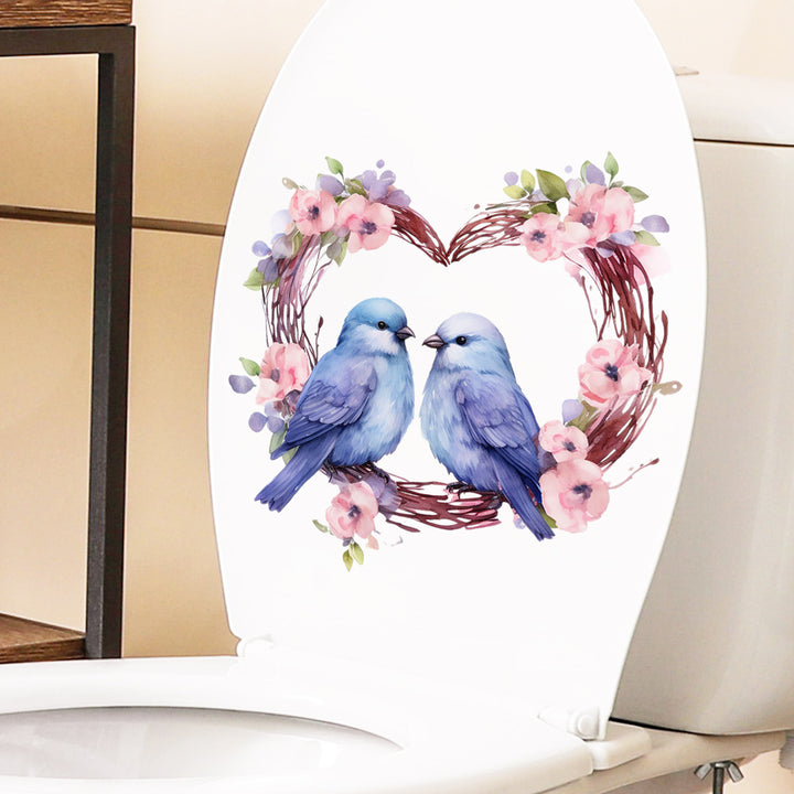 Cross-border new love branches, blue bird self-adhesive decorative sticker, suitable for bathroom toilet wall glass