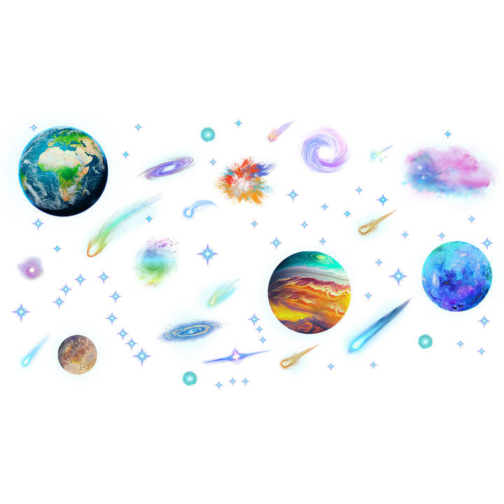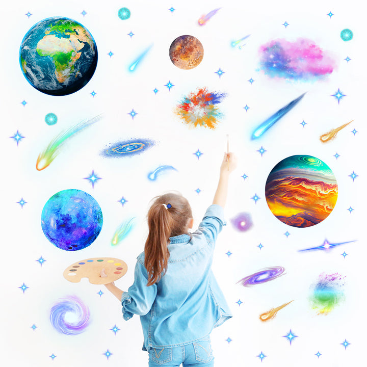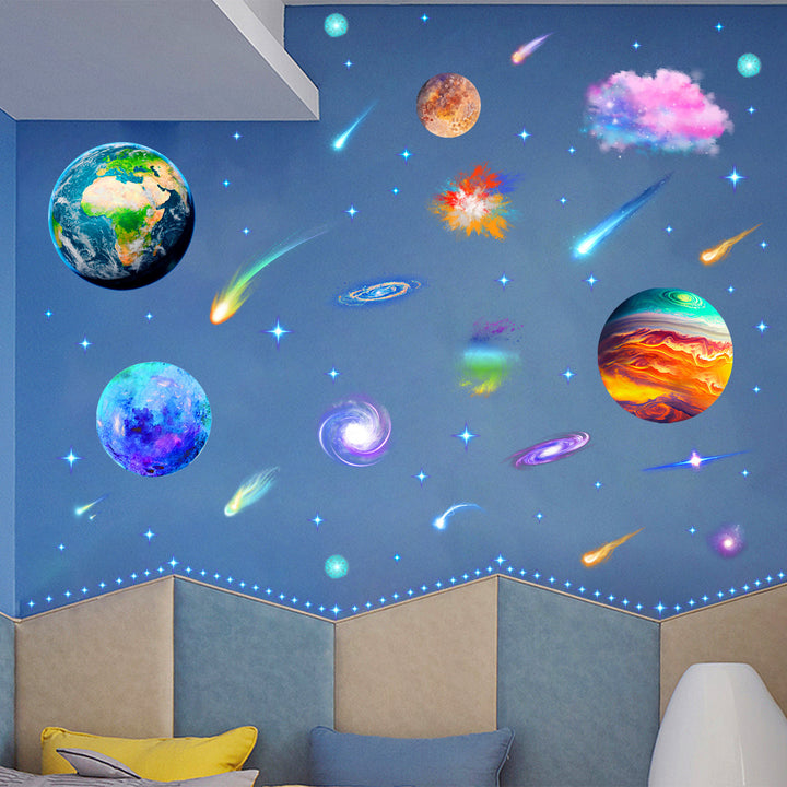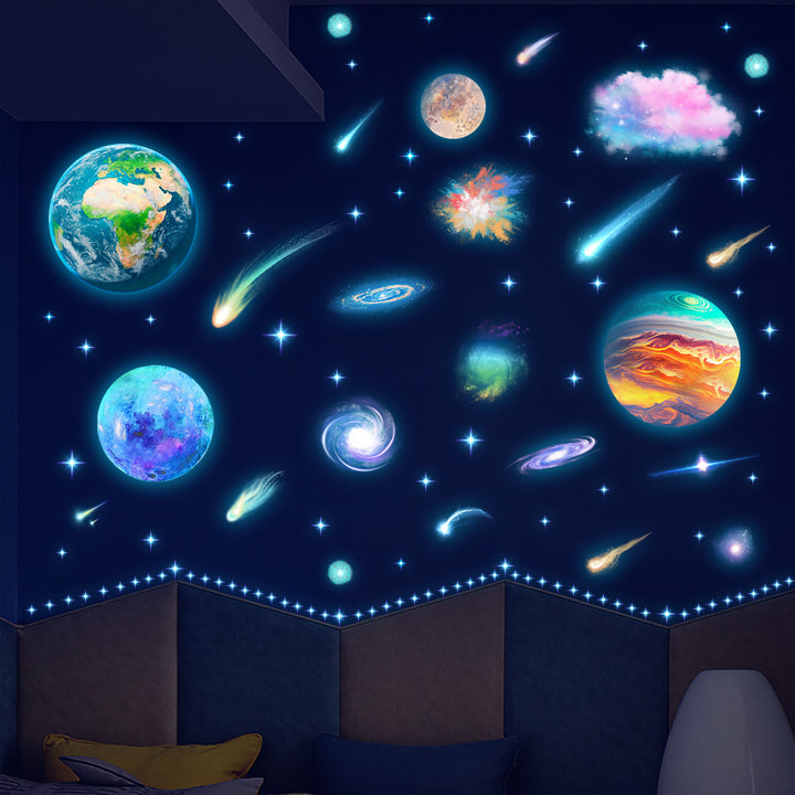Cross-border new luminous decoration self-adhesive sticker outer space planet creative luminous wall ceiling removable sticker
