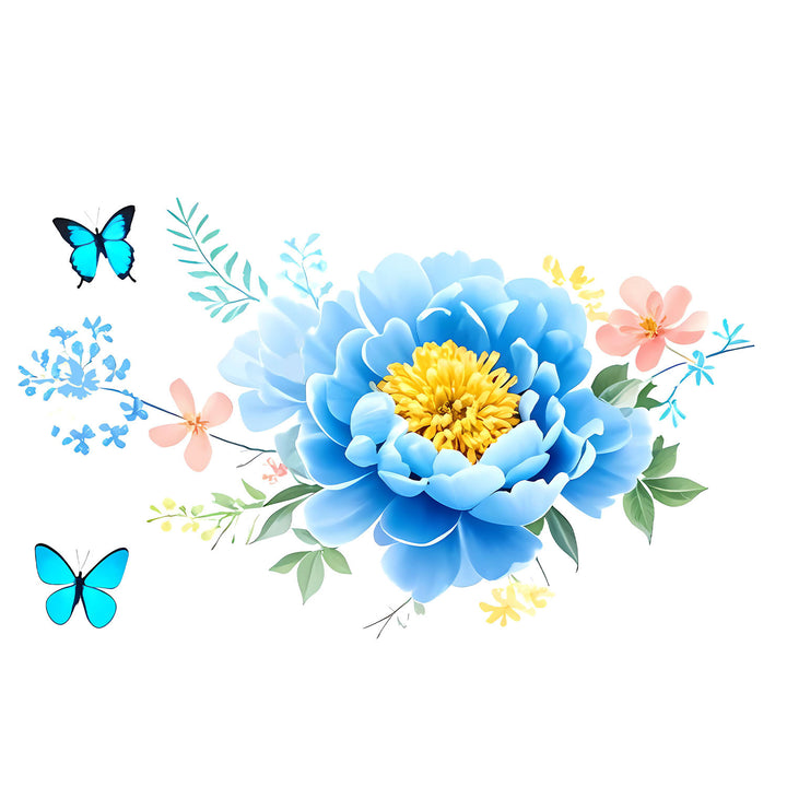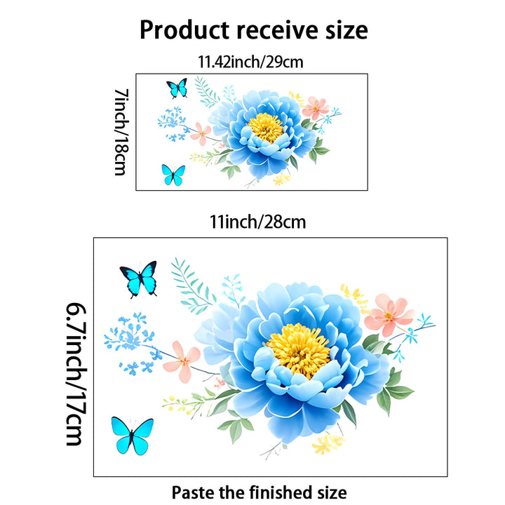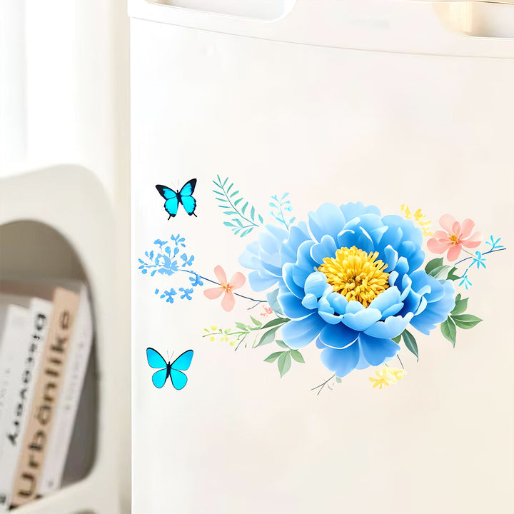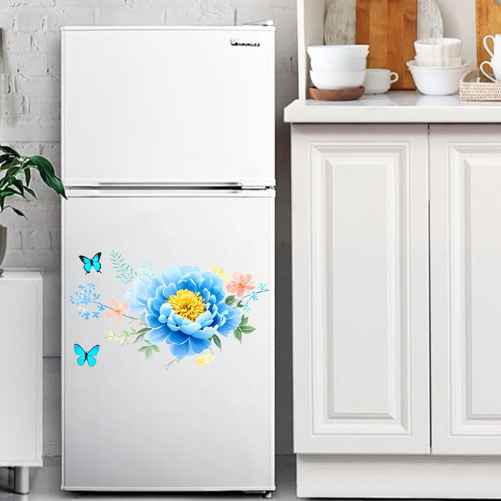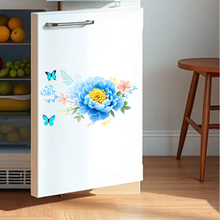 Cross-border new plant blue flower butterfly sticker living room cabinet refrigerator decoration beautiful self-adhesive sticker