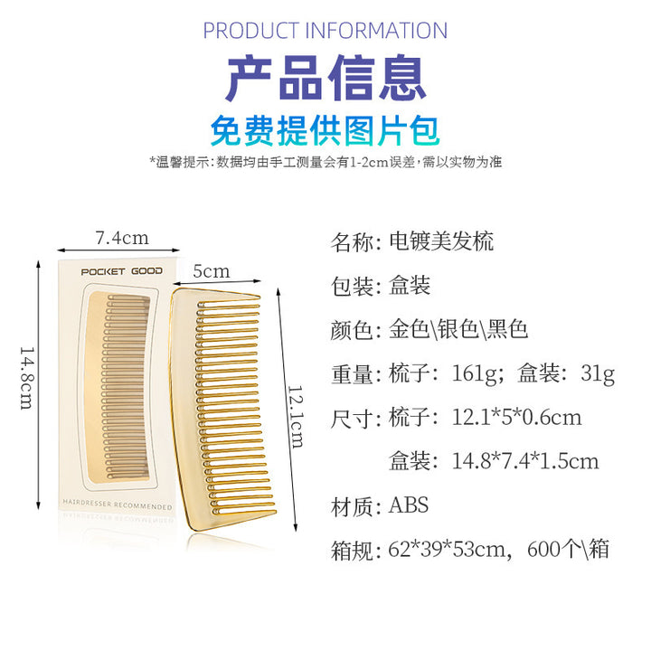 Cross-border new product electroplating hair comb comb anti-static hair comb arc comb metal short hair comb modeling comb manufacturer