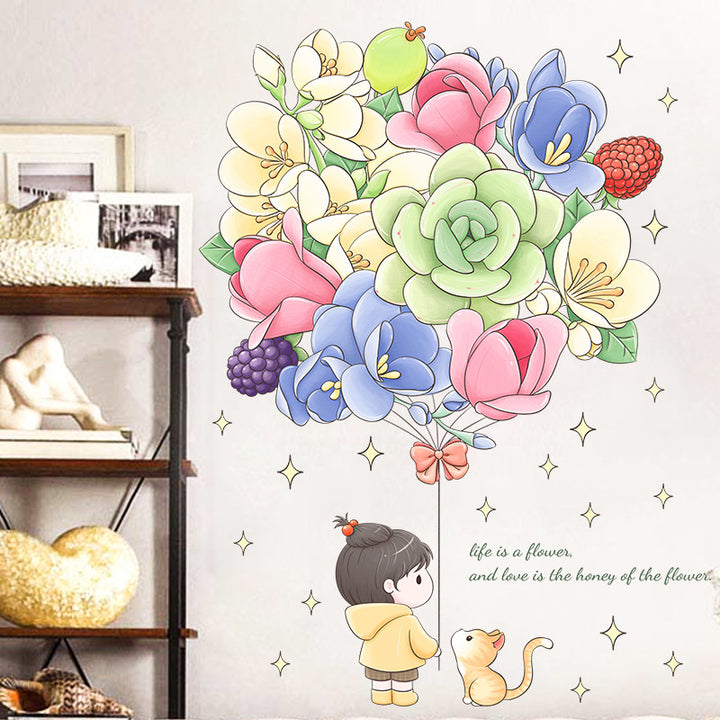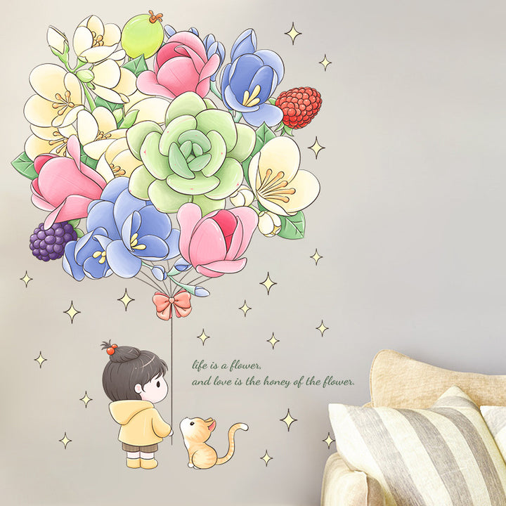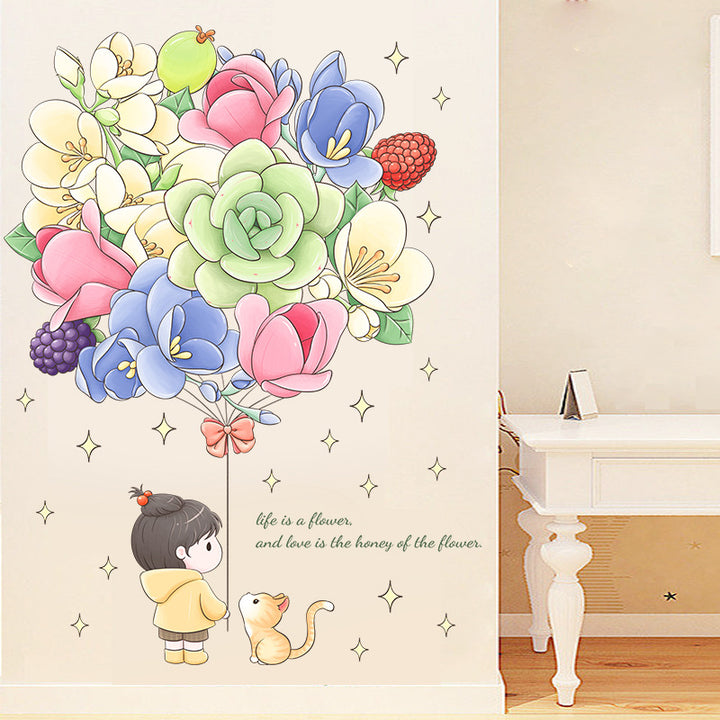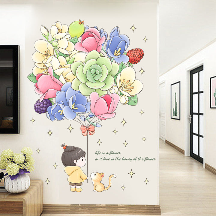 Cross-border new romantic cartoon girl balloon succulent living room bathroom entrance restaurant TV wall decorative wall sticker