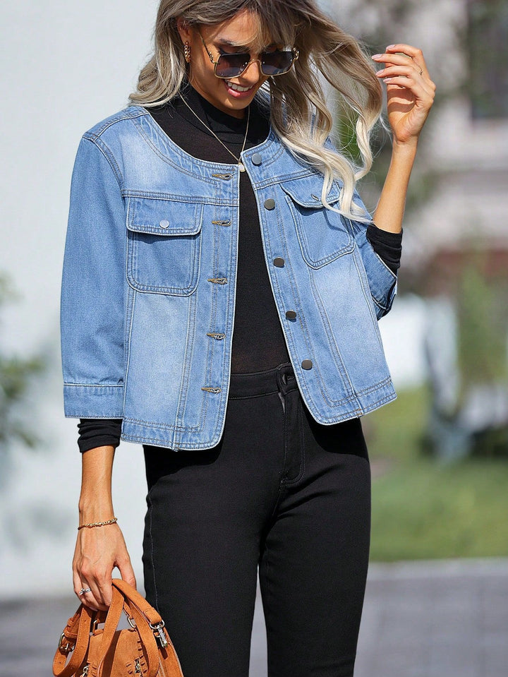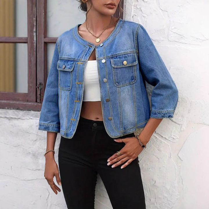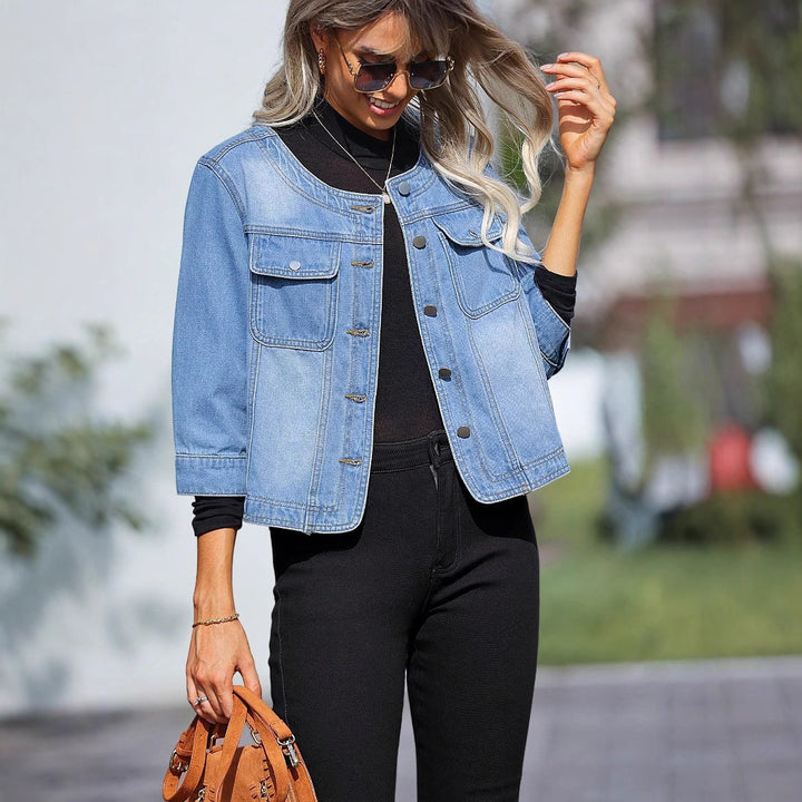 Cross-border new seven-quarter-sleeved denim jacket women's 2025 summer clothing new spring short women's versatile loose top
