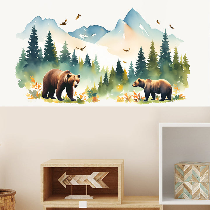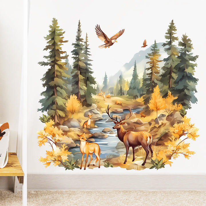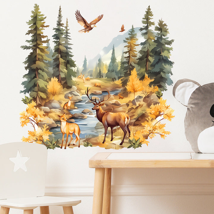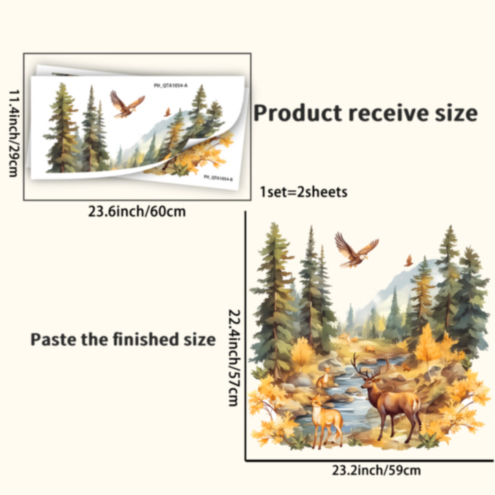 Cross-border new sticker nature scenery deer and brown bear creative self-adhesive sticker for home wall decoration