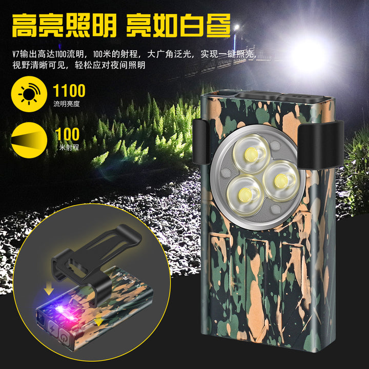 Cross-border new V7 super bright metal mini flashlight charging multi-function magnetic work ...