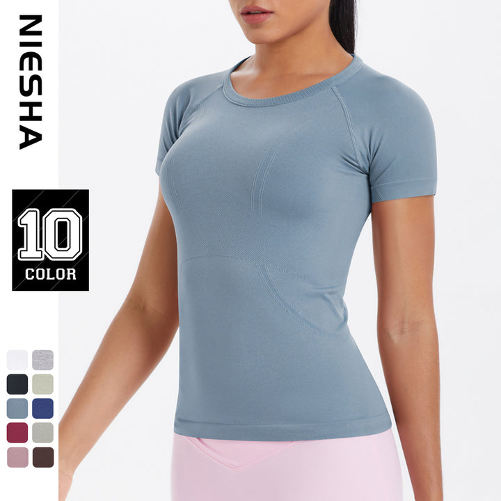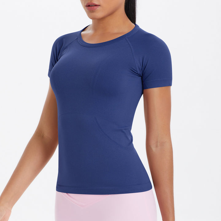 Cross-border new women's short-sleeved crew neck sports T-shirt, running fitness top, skin-friendly, slim and breathable yoga short sleeves