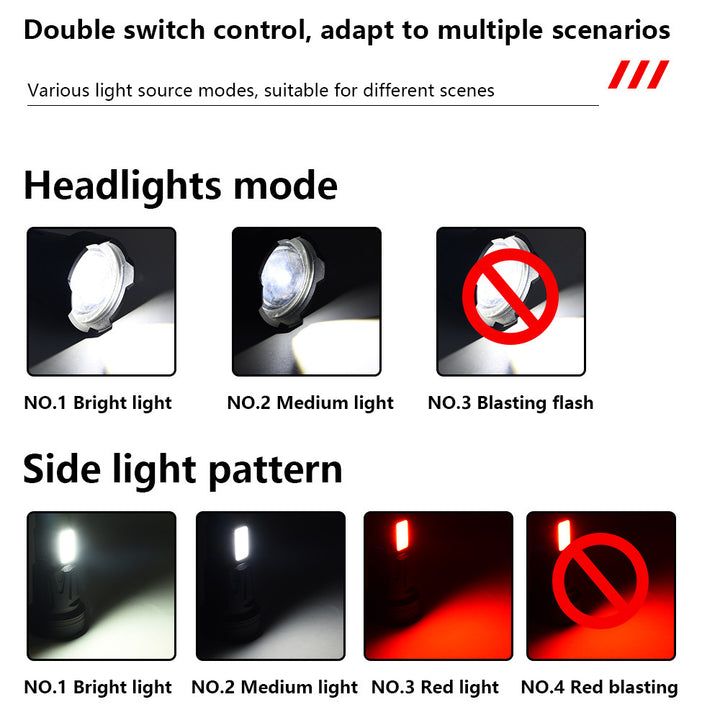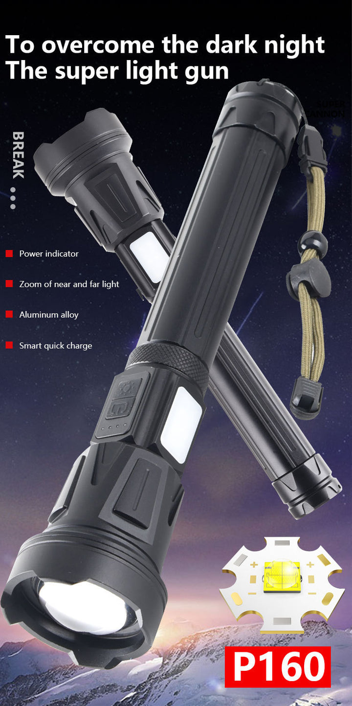 Cross-border new XHP160 + COB strong light flashlight Type-C rechargeable zoom long-range outdoor LED flashlight