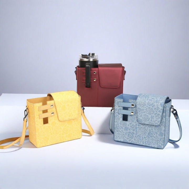 Cross-border outdoor portable beverage bottle water cup bag printed large thermos cup single shoulder oblique span bag fashionable storage bag women