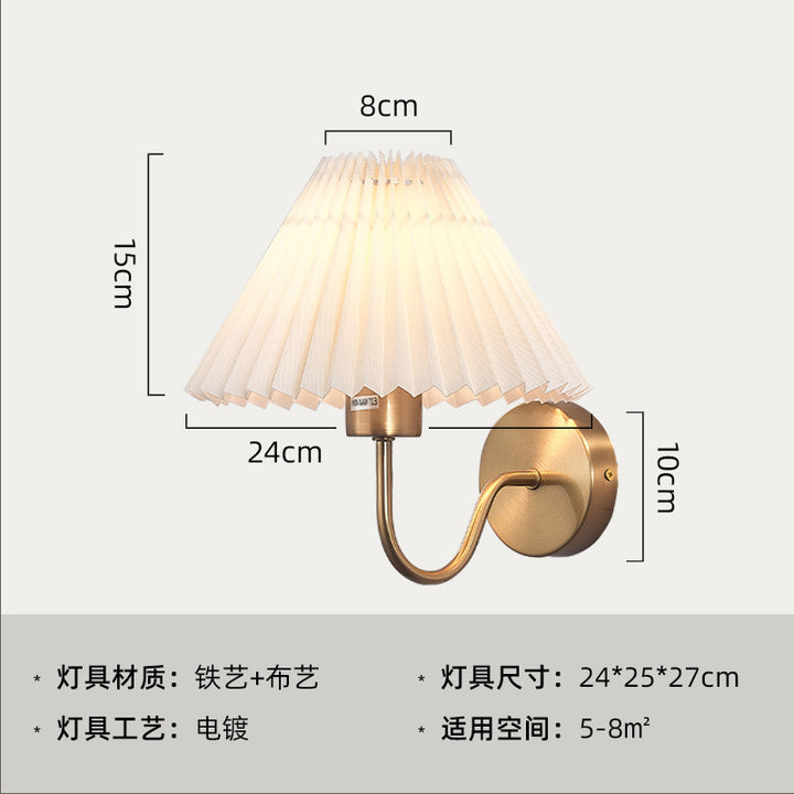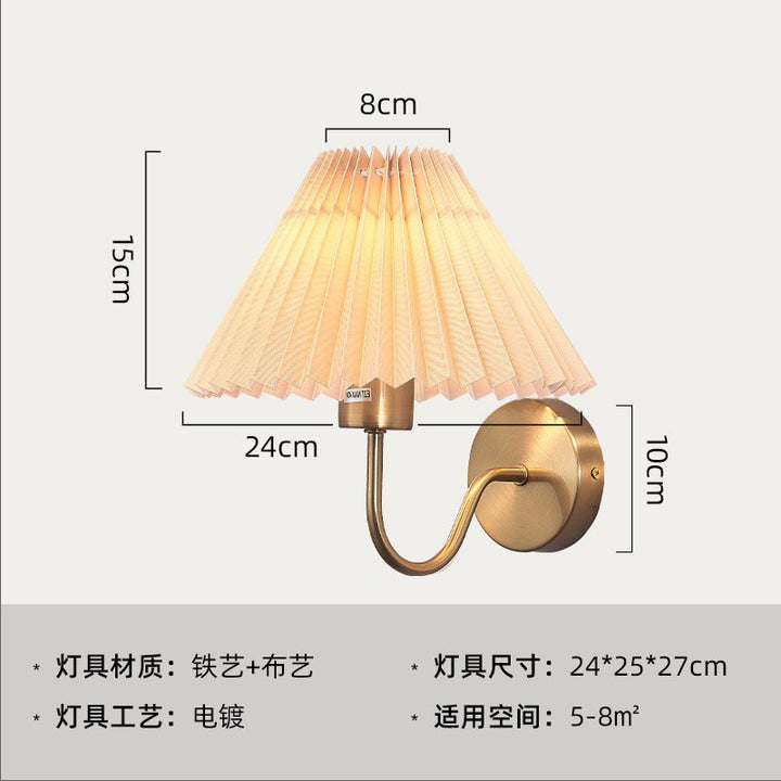 Cross-border pleated wall lamp Bedroom bedside lamp Hotel room Fabric wall lamp Japanese style living room aisle corridor wall lamp