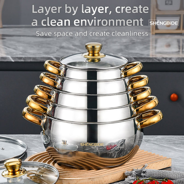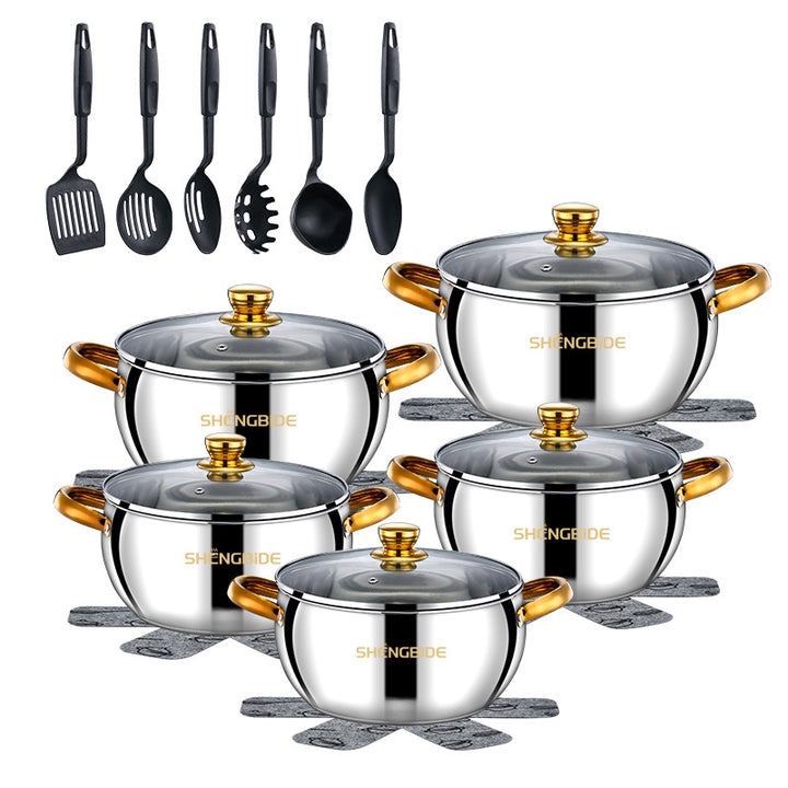 Cross-border pot set, soup pot set, stainless steel pearl pot 21-piece set, cooking pot nonstickpot pot