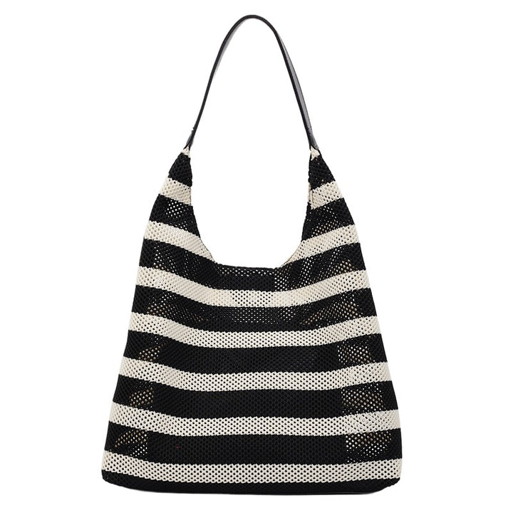 Cross-border premium contrasting striped woven bag large capacity hollow shoulder underarm bag tote bag leisure travel bag